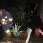 Nach einiger Zeit zeigten unsere Pumparbeiten Erfolg und der Wasserspiegel sank so weit ab, dass wir zum Ventil der Wasseruhr kamen und die Wasserzufuhr stoppen konnten. Nach 2 Stunden und ca. 150m³ Wasser auspumpen konnten wir wieder ins Feuerwehrhaus einrücken.