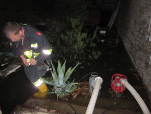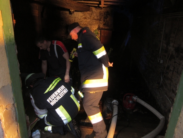 Nach telefonischer Alarmierung beim Kommandanten „Keller unter Wasser“ rückten 5 Mann die sich gerade im Feuerwehrhaus befanden zum Einsatzobjekt nach Traunfeld aus.