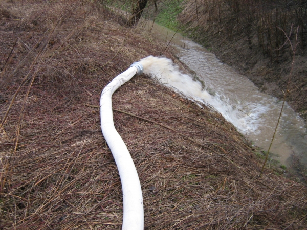 Da zum Zeitpunkt der Alarmierung eine Schulung für technische Einsätze im Feuerwehrhaus stattfand, konnte bereits nach einer Minute ein Fahrzeug mit unserer Schlammpumpe zum Einsatzort ausrücken.