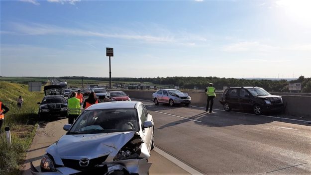 Verkehrsunfall auf der A5 mit mehreren beteiligten Fahrzeugen
