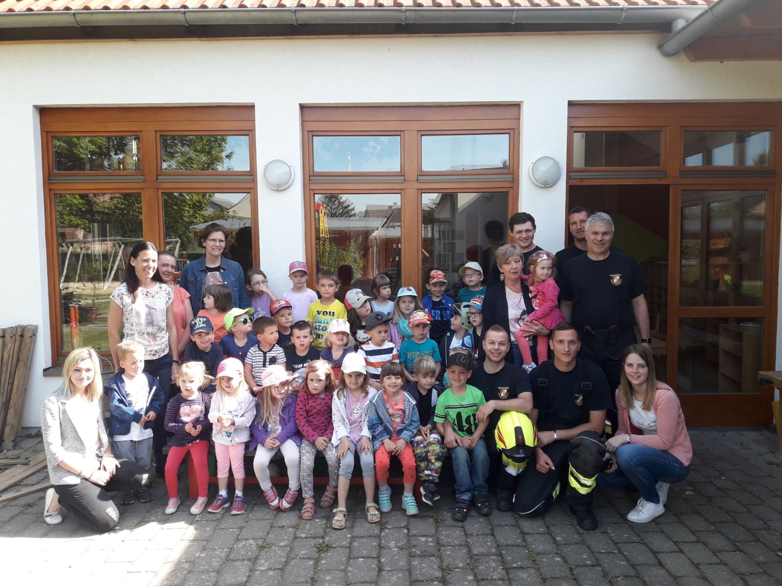 Zur Vorbereitung auf die Übung am 27.04. besuchten einige Kameraden den Kindergarten. Dabei konnten die Kinder das Atemschutzgerät kennen lernen. Ebenso durften sie Helme anprobieren und im Feuerwehrauto Probe sitzen. Wir freuten uns ganz besonders über den herzlichen Empfang und die strahlenden Kinderaugen.