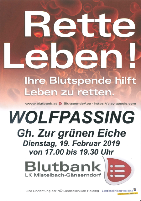 Blutspenden 19.02.2019 – 17:00 Die Freiwillige Feuerwehr Hochleithen lädt in Zusammenarbeit mit der Blutbank Mistelbach-Gänserndorf am 19. Februar, von 17:00 bis 19:30 Uhr, zum Blutspenden in das Gasthaus zur grünen Eiche. © Feuerwehr Hochleithen Bilder Autor: Kristian Pfauser KommentarnavigationZurückVorheriger Beitrag:Blutspenden 19.02.2019NächstesNächster Beitrag:WinterschulungÄhnliche BeträgeStockfleischessen im Feuerwehrhaus20. Februar 2026Ball der Freiwilligen Feuerwehr Hochleithen17. Januar 2026Fahrzeugbergung am 2. Advent7. Dezember 2025Patenschaft für neue Atemluftflaschen4. Dezember 2025Weihnachtsfeier der Feuerwehr Hochleithen29. November 2025Alarmierung zu T2 Menschenrettung29. November 2025