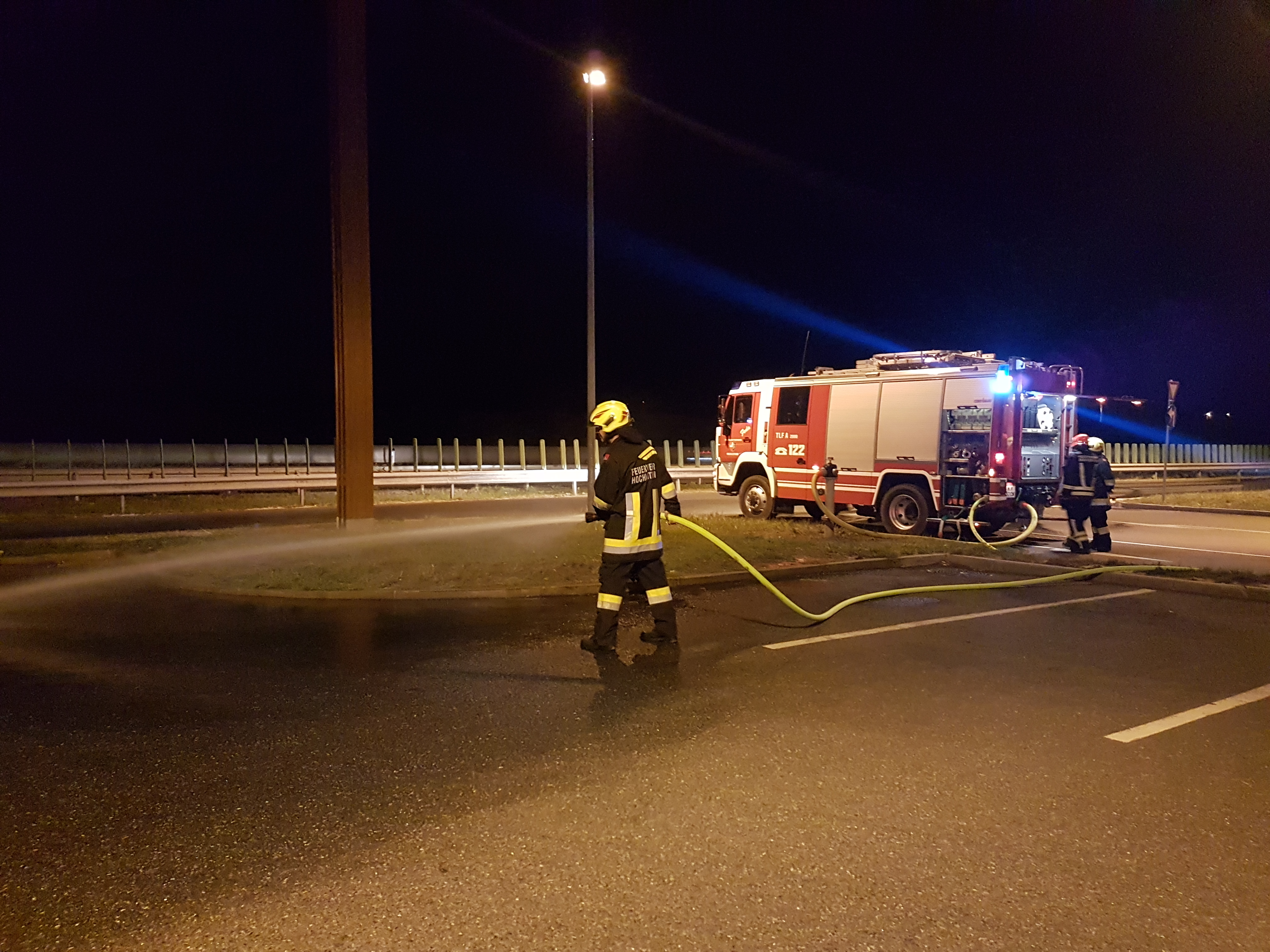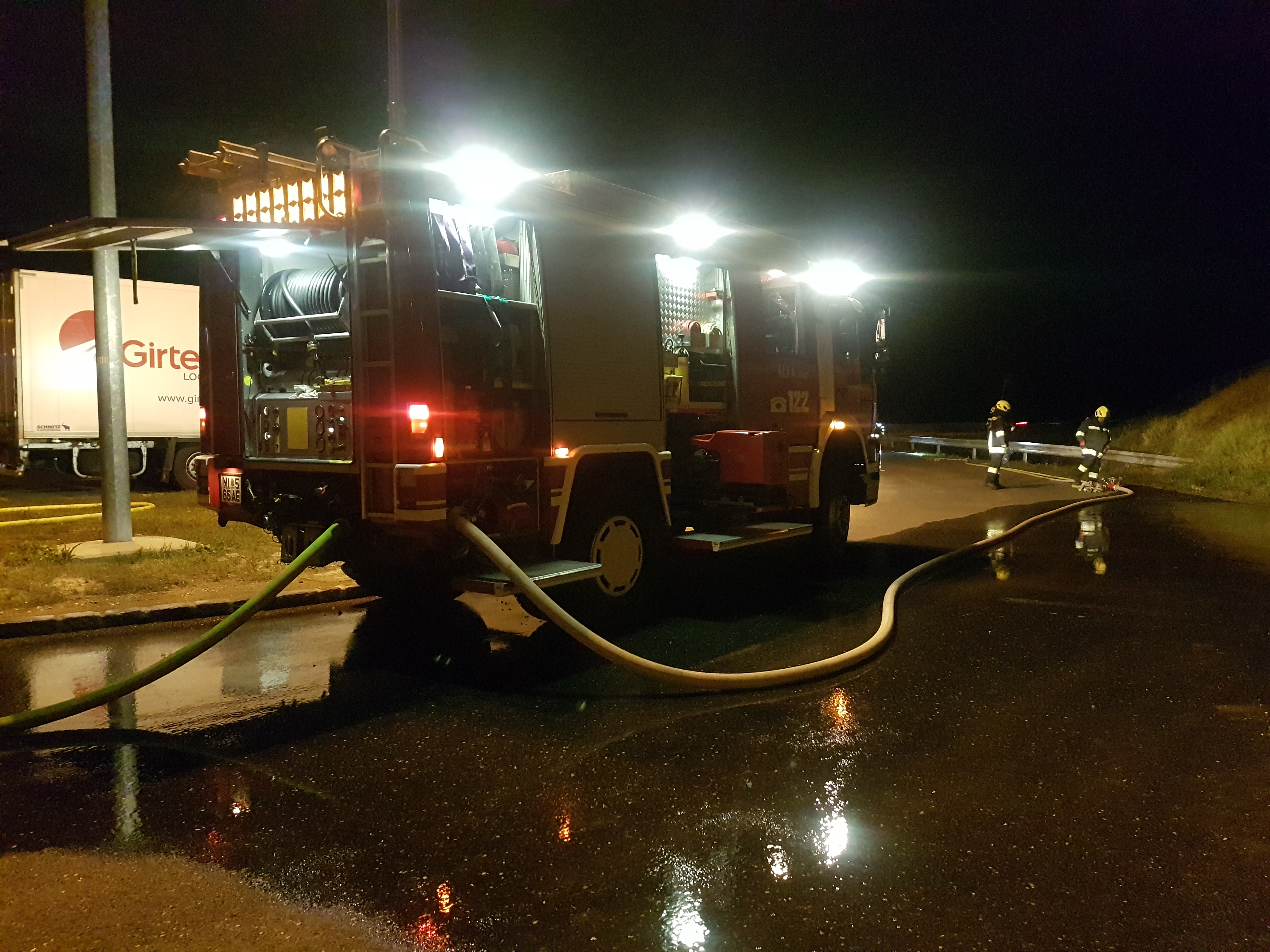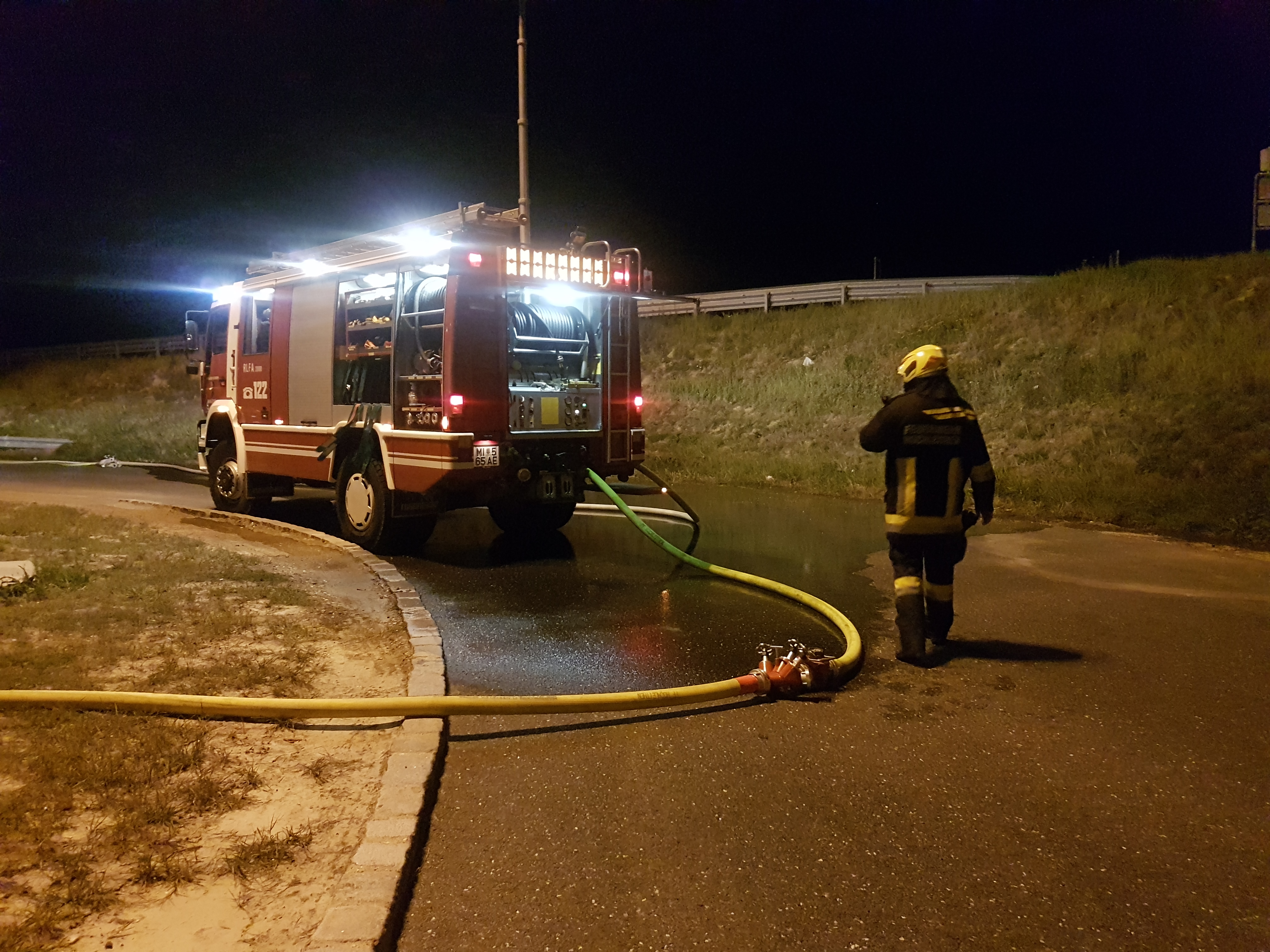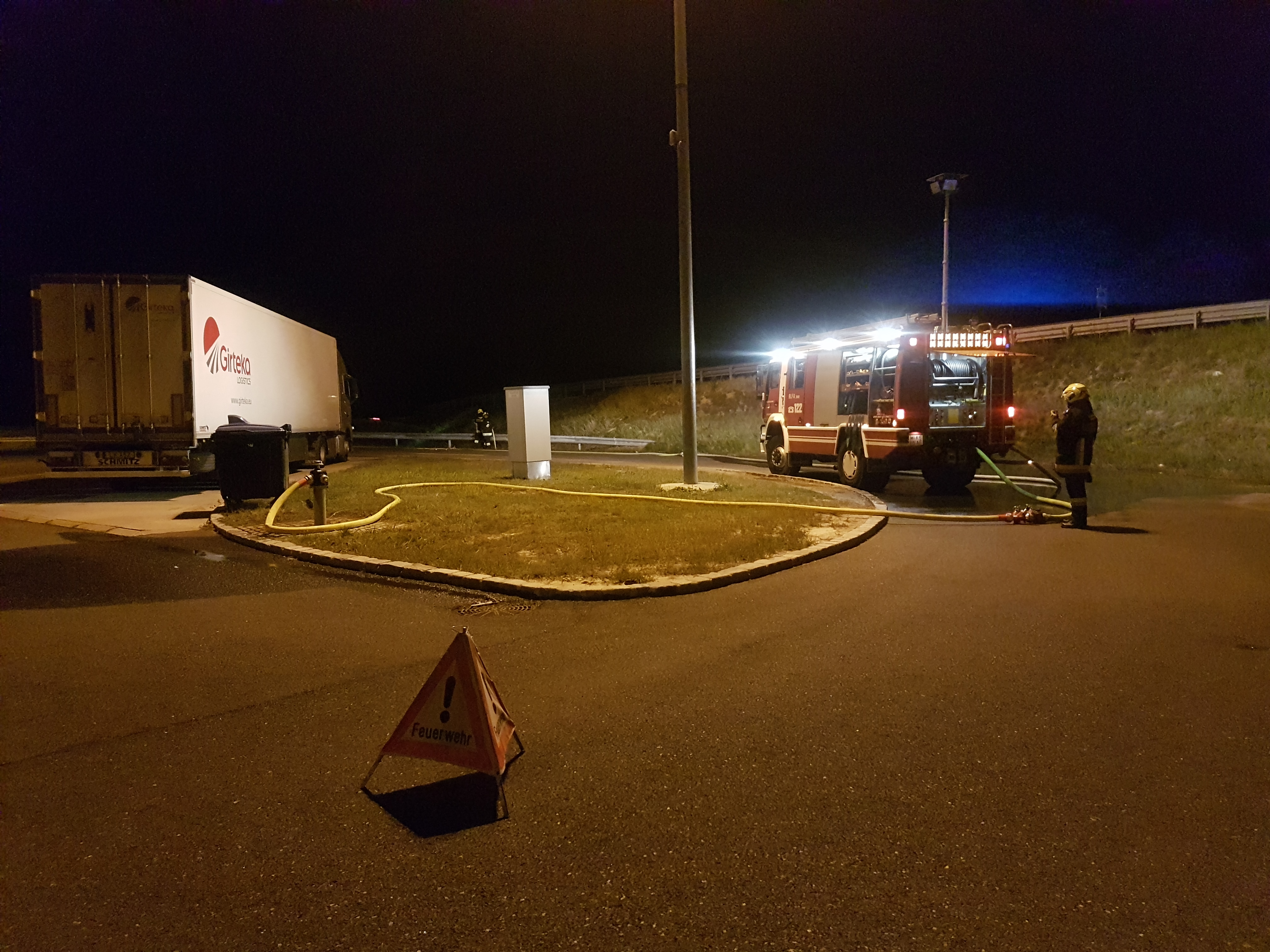 Die herbstliche Zugsübung stand ganz im Zeichen der Raststation. Vor der eigentlichen Einsatzübung wurden die Besonderheiten der Örtlichkeit besichtigt. Im Speziellen wurde das Hydrantennetz der Raststation inspiziert. Dieses muss im Zuge eines Einsatzes aus einem unterirdischen Löschwasserbehälter gespeist werden, welcher sich neben der Tankstelle befindet. Dabei nimmt das neue Hilfeleistungsfahrzeug 1 eine essenzielle Rolle ein, da es für diese Aufgabe zuständig ist.