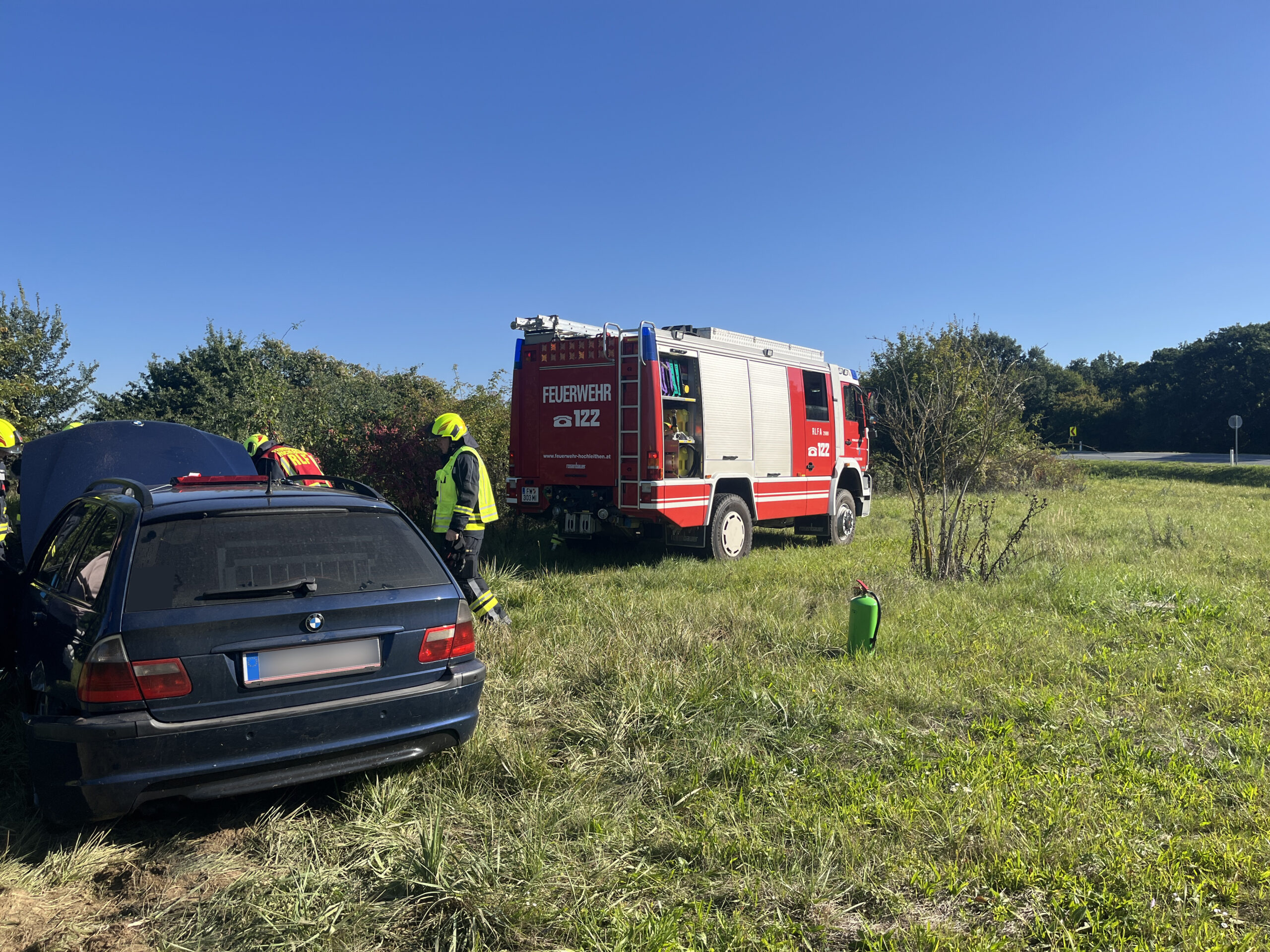 Wir sicherten die Unfallstelle ab und bauten den Brandschutz auf. Das Fahrzeug wurde anschließend gesichert abgestellt.