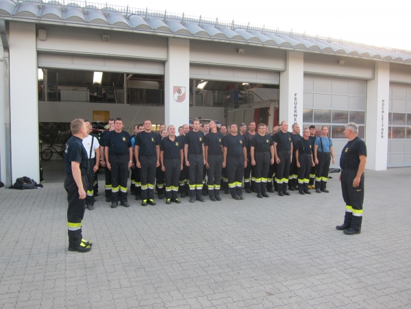 Nach der Übung gab es eine ausführliche Nachbesprechung im Feuerwehrhaus.