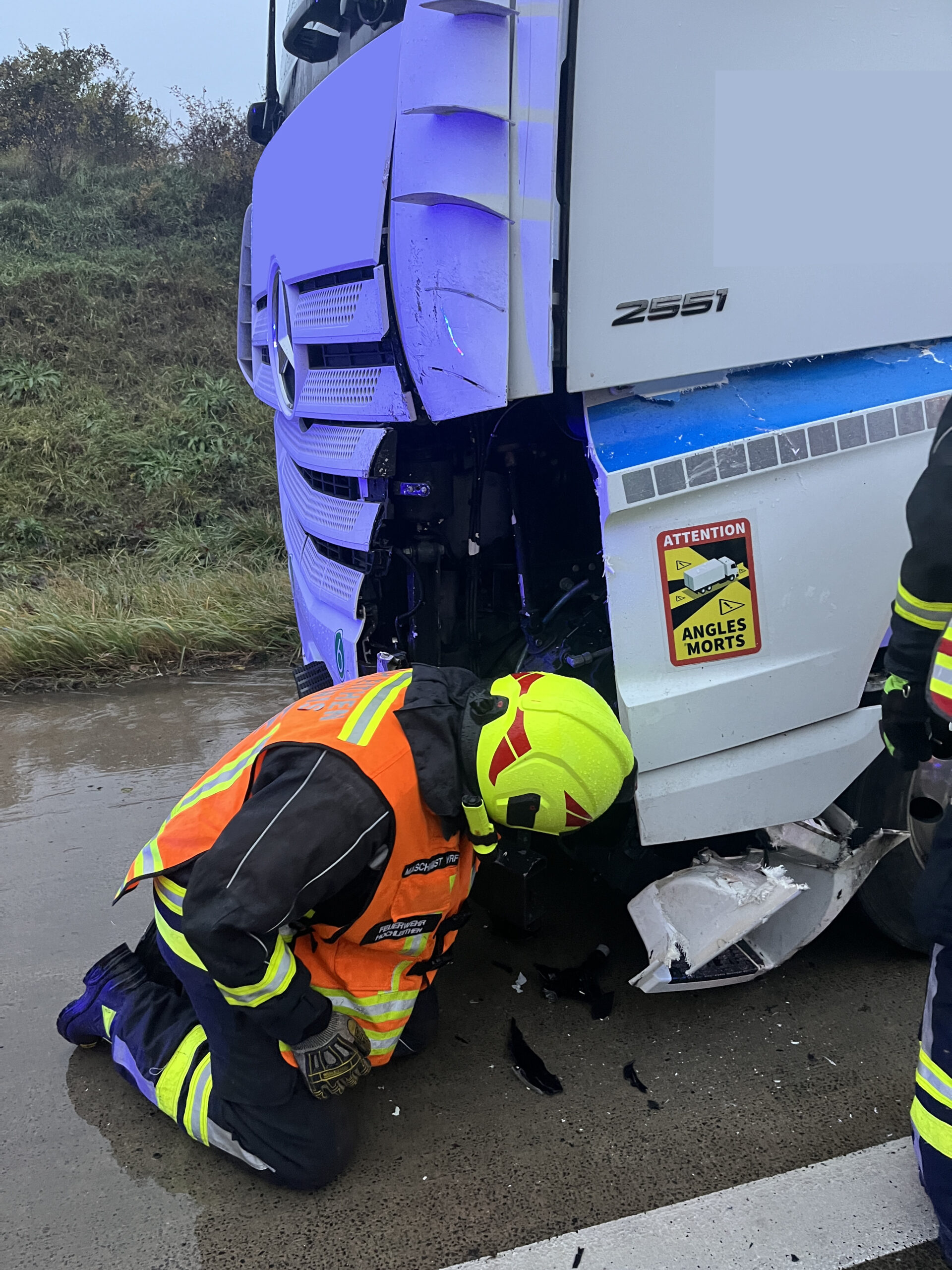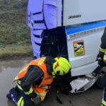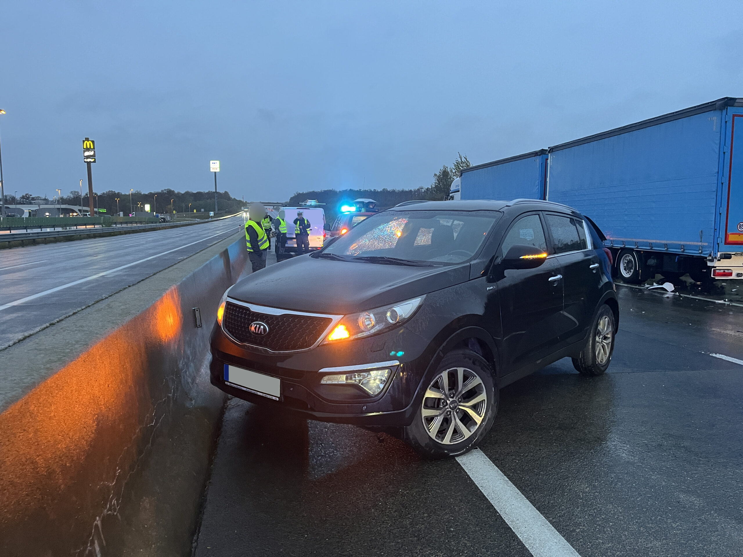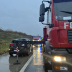 Wir rückten mit unserem Vorausrüstfahrzeug und dem Rüstlöschfahrzeug zur Einsatzstelle aus. Vor Ort zeigte sich folgende Lage: Ein beschädigter LKW stand am Pannenstreifen, während ein ebenfalls beschädigter PKW auf der Überholspur zum Stillstand gekommen war. Es gab keine Verletzten.