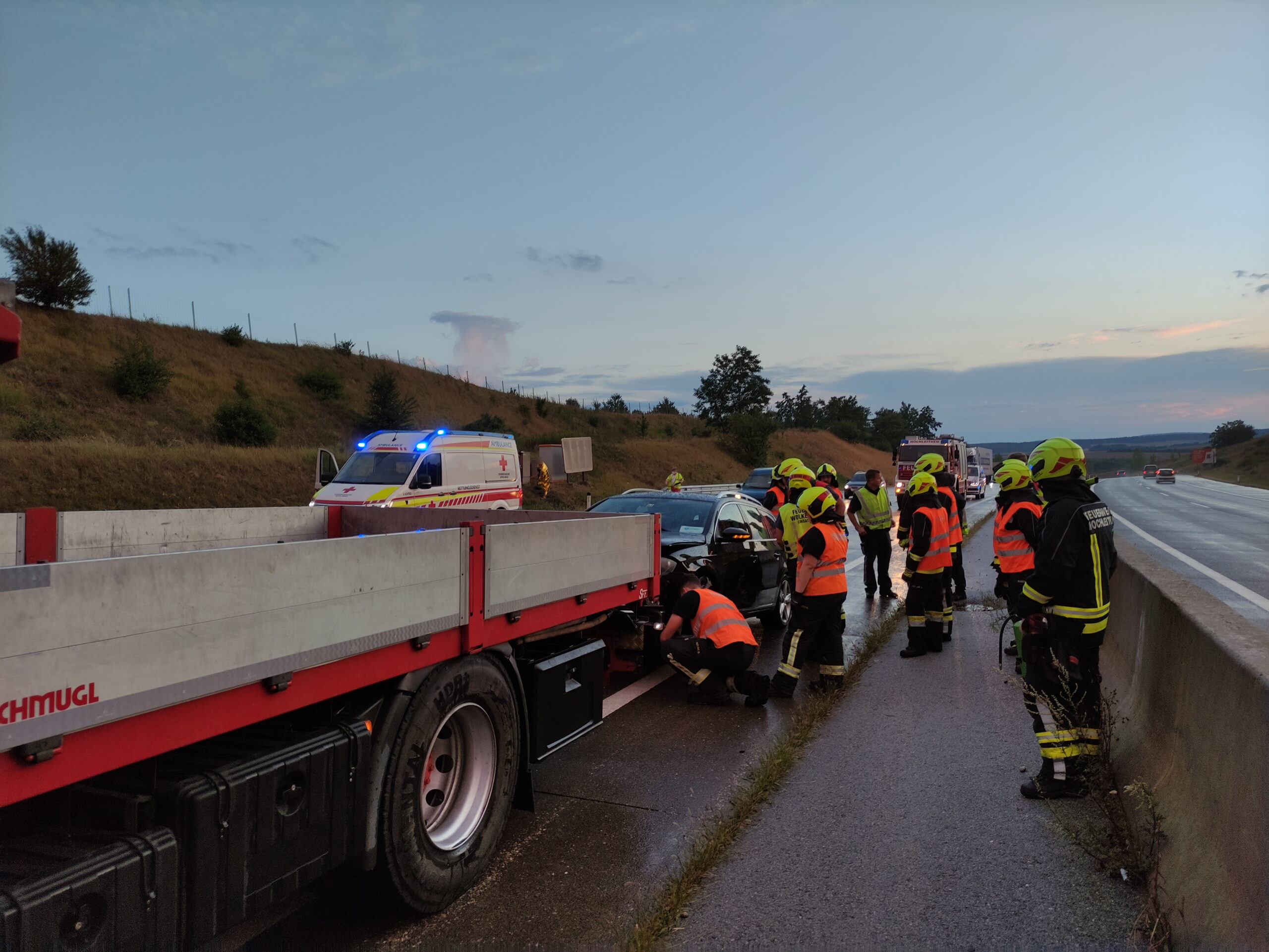 Kurz nach 20 Uhr wurden wir gemeinsam mit der FF Wolkersdorf zu einer Fahrzeugbergung auf die A5 in Fahrtrichtung Brünn alarmiert und nacheinander rückten Vorausfahrzeug und Rüstlöschfahrzeug zur Einsatzstelle aus.