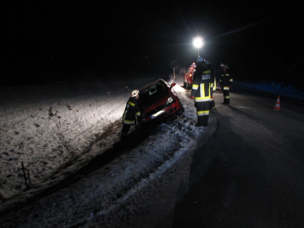 Durch vermutliche Unachtsamkeit kam der Fahrzeuglenker mit seinem PKW von der Straße ab und auf der schneebedeckten Böschung zum Stillstand.