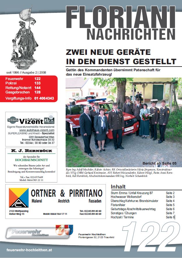 Juni302008 Feuerwehrzeitung 02_2008 Von Stefan Ausfelder30. Juni 2008ZWEI NEUE GERÄTE IN DEN DIENST GESTELLT Details
