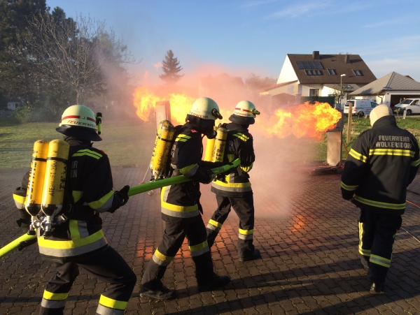 Diese Woche wurde ein Flanschbrandechtfeuersimulator in Großengersdorf stationiert. Unter Atemschutz wurde die richtige Technik des Hohlstrahlrohres geübt. Dafür war ein eigenes Trainingsgerät organisiert. Mehrere Feuerwehren aus dem Abschitt Wolkersdorf konnten die Vorteile eines Hohlstrahlrohres üben.