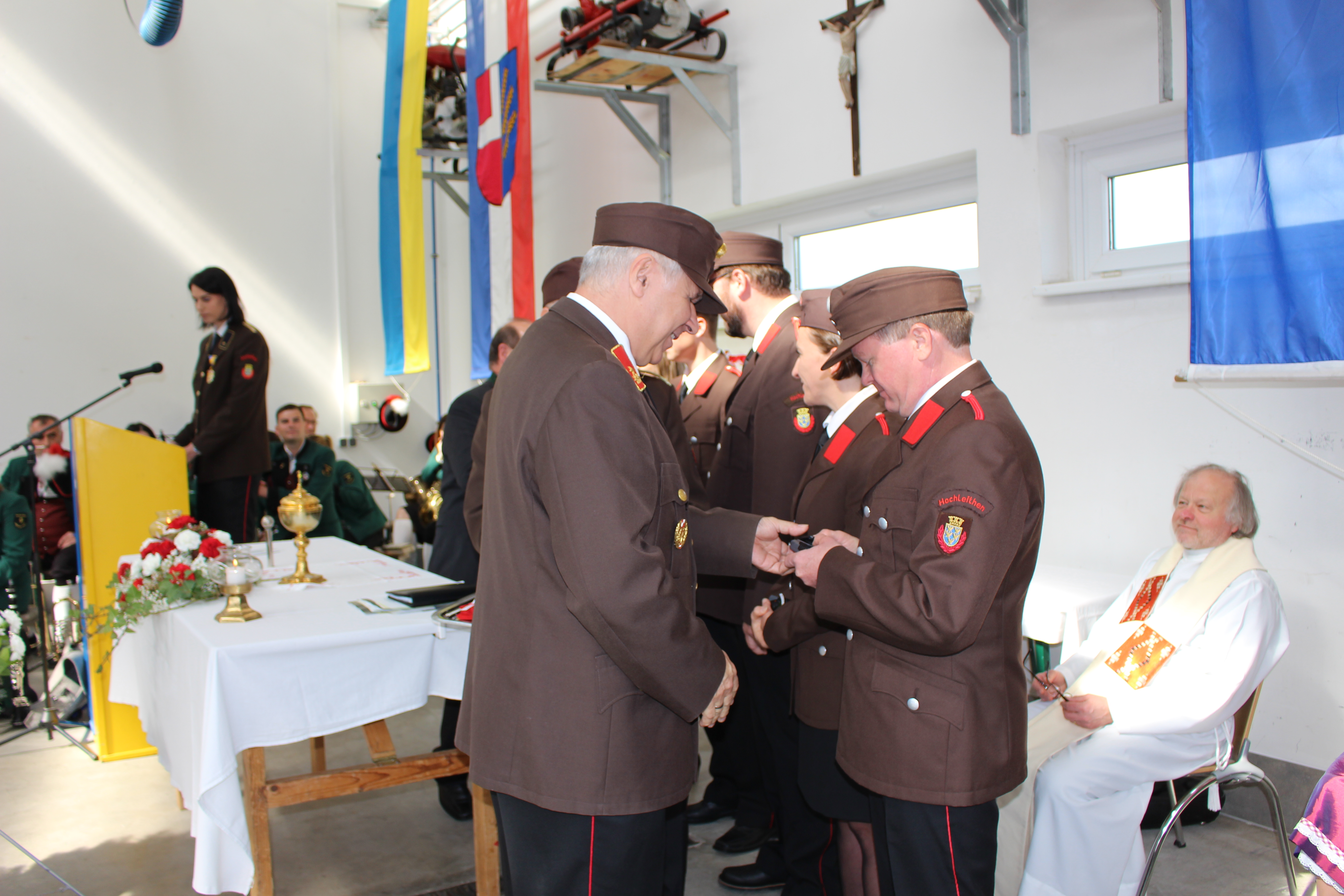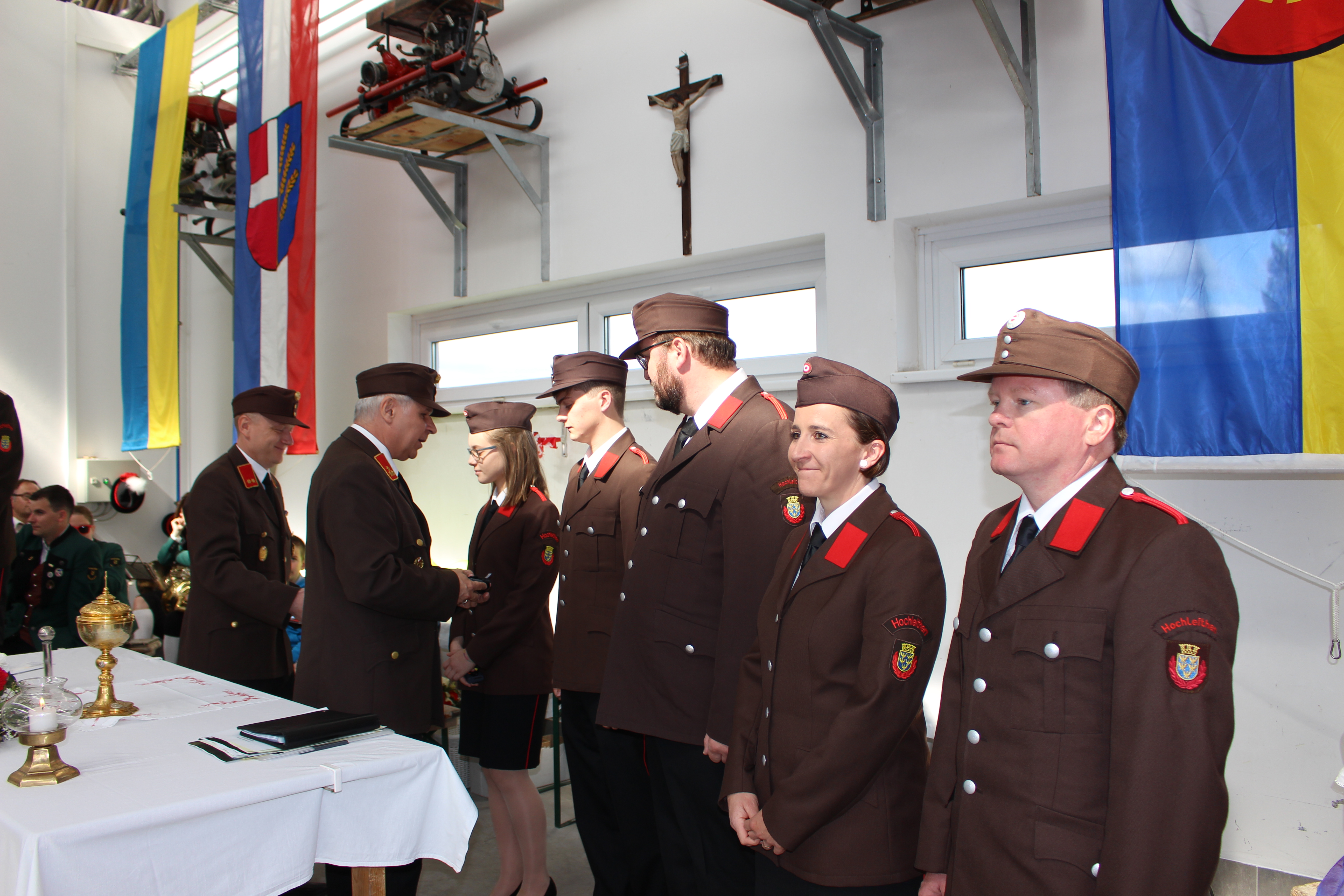 Zusätzlich durften wir uns über fünf neue Feuerwehrmitglieder freuen. Im Zuge der Angelobung leisteten diese ihren Eid und erhielten jeweils einen Pager und ihren Einsatzhelm. Somit wird unsere Mannschaft nun auch von Sabrina Koller, Sebastian Vogt, Andreas Simbeck, Brigitte Randus und Christian Randus unterstützt. Aufgrund seiner langjährigen Verdienste in der Feuerwehr Hochleithen wurde HBM Johannes Schiller zum Ehrenhauptbrandmeister befördert.