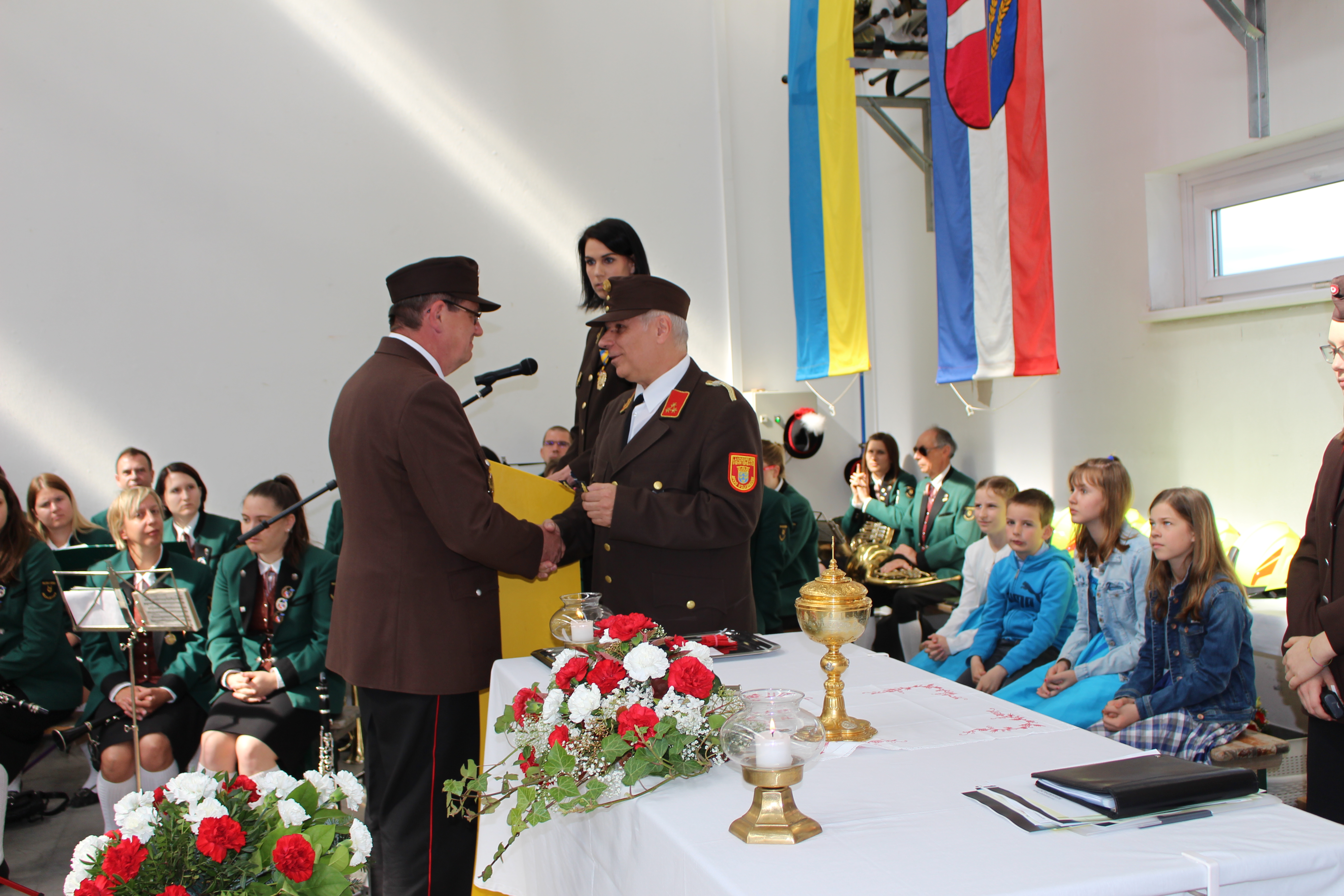 Danach gab Kommandant Rudolf Weigl den Gästen einen kurzen Rückblick auf die letztjährigen Tätigkeiten in und rund um die Feuerwehr. Unser Bürgermeister Ing. Adolf Mechtler wies in seiner Ansprache auf die anstehenden Herausforderungen hin und dankte der Feuerwehr für die tagtägliche Einsatzbereitschaft.