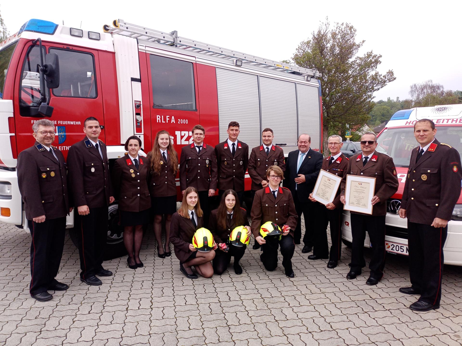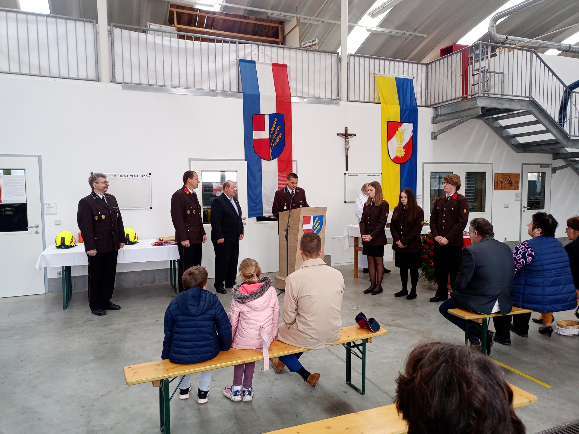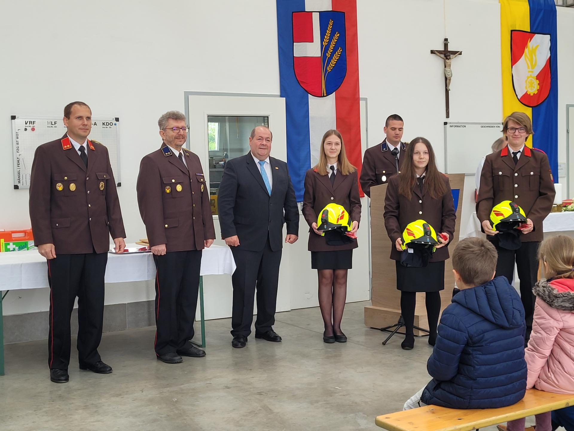 Im Zuge der Angelobung leisteten unsere neuen Feuerwehrmitglieder Melanie Behr, Verena Achter und Fabian Kugler ihren Eid und es wurden folgende weitere Beförderungen durchgeführt: