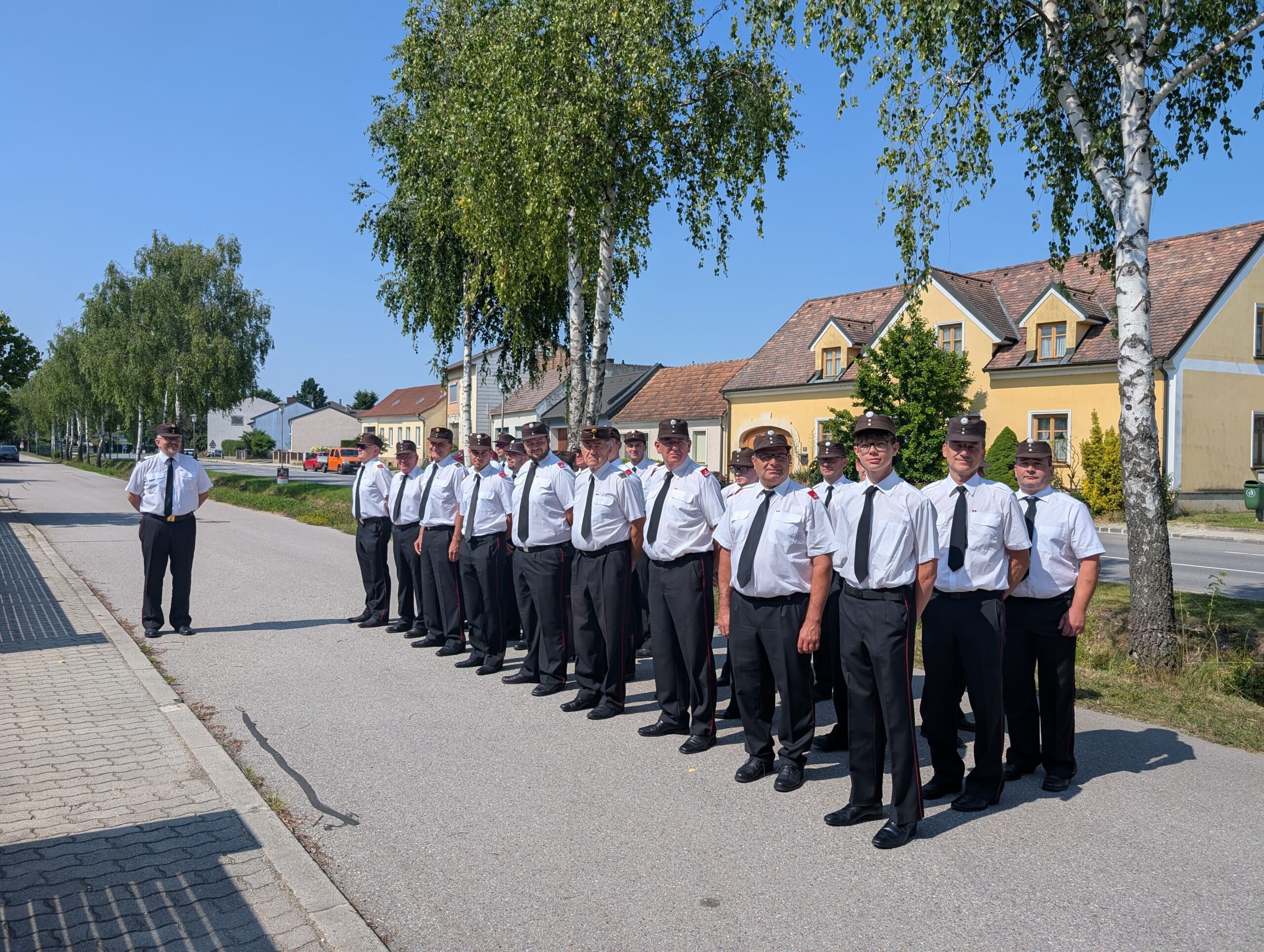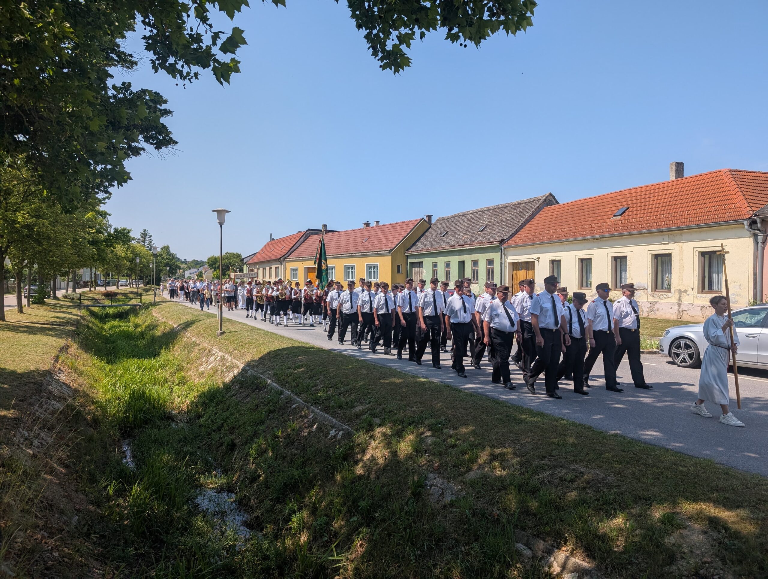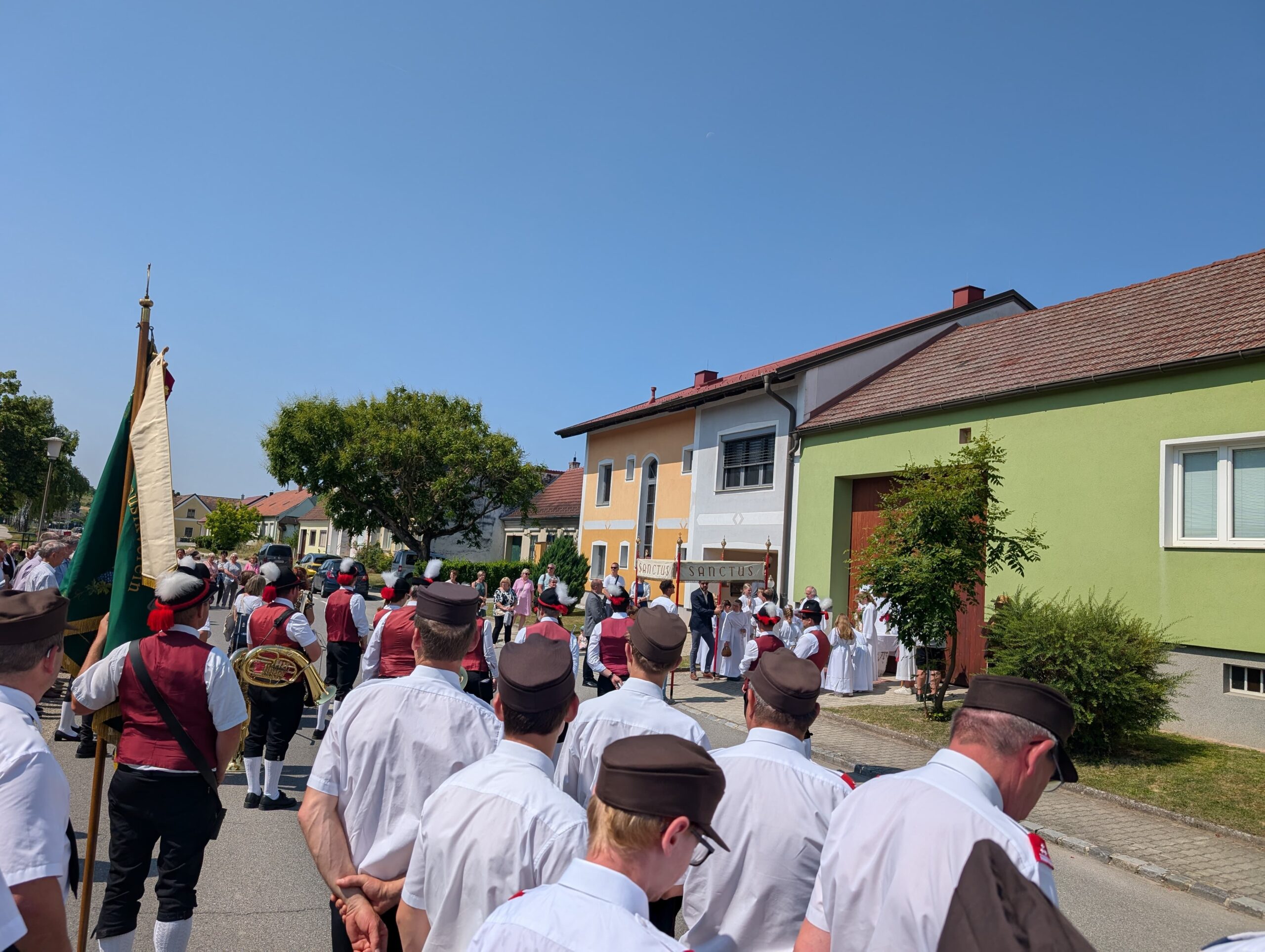 Am Donnerstag fand die traditionelle Fronleichnamsprozession statt. Bei strahlendem Sonnenschein und sommerlichen Temperaturen wohnten die Kameradinnen und Kameraden der Freiwilligen Feuerwehr Hochleithen dem Festumzug bei.