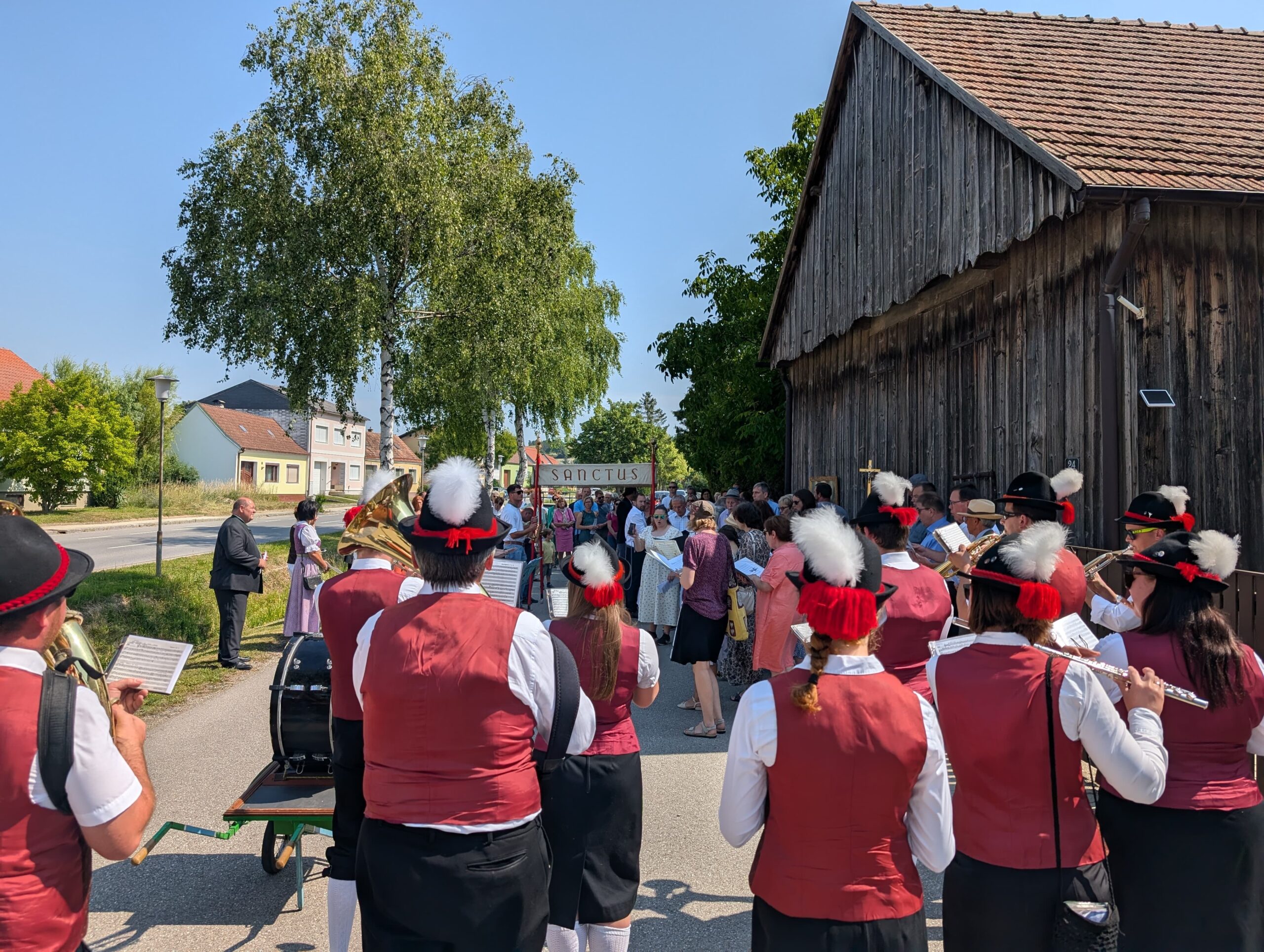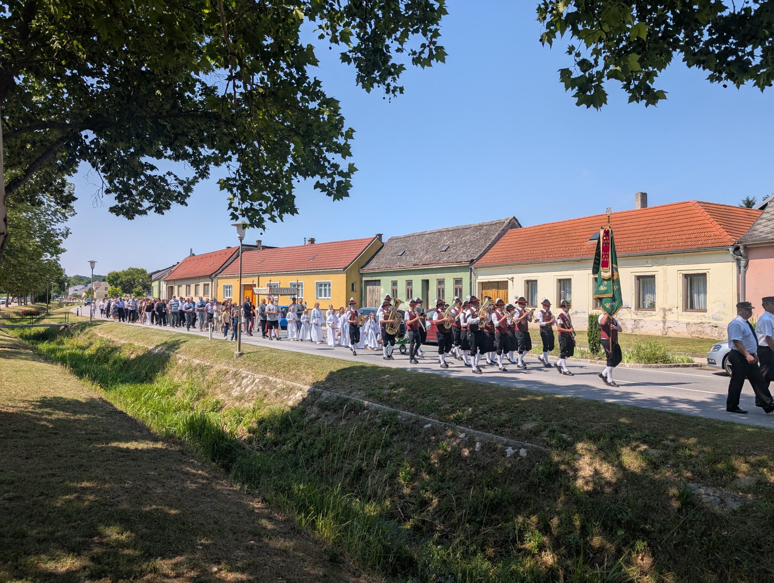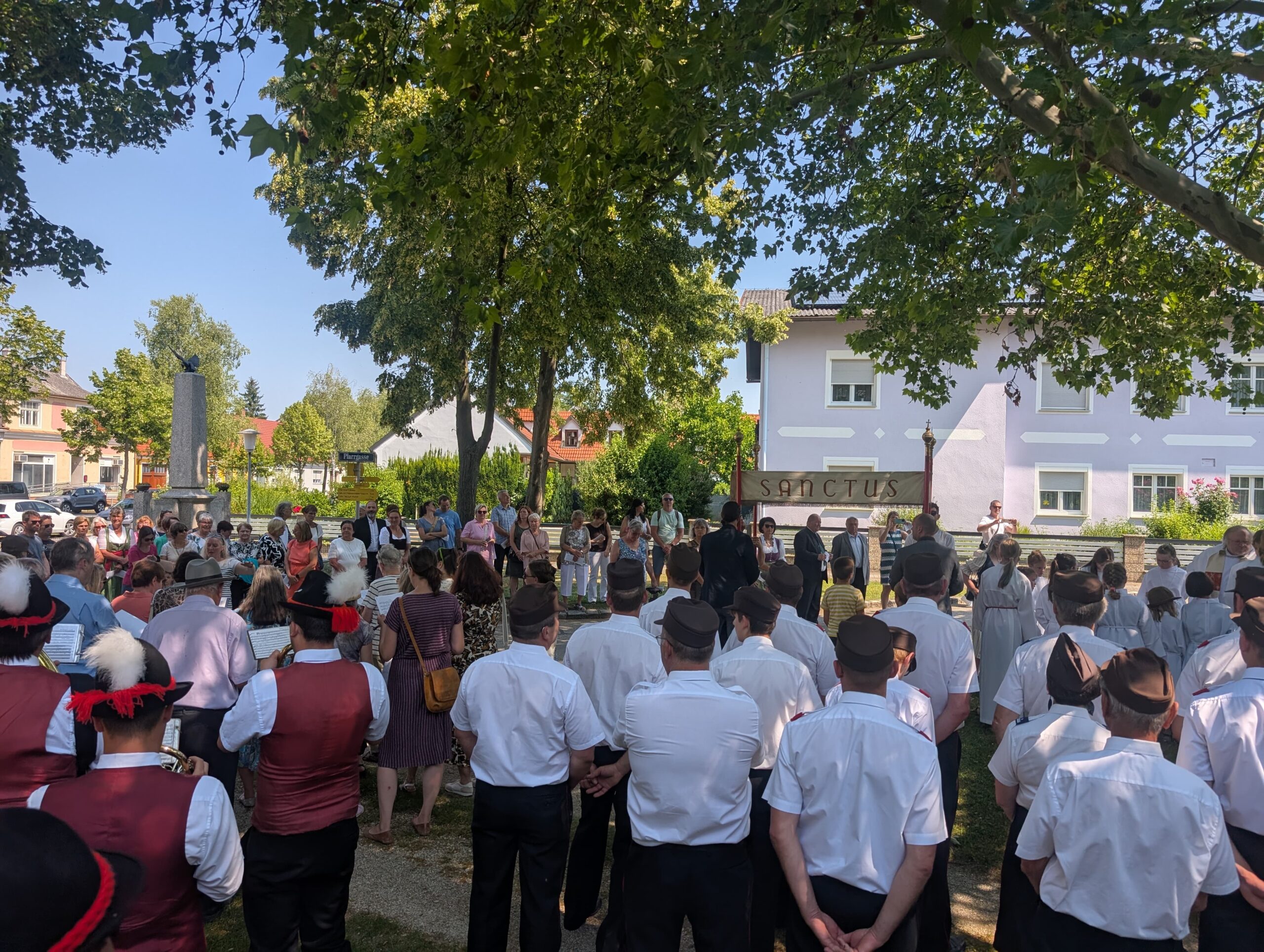 Am Donnerstag fand die traditionelle Fronleichnamsprozession statt. Bei strahlendem Sonnenschein und sommerlichen Temperaturen wohnten die Kameradinnen und Kameraden der Freiwilligen Feuerwehr Hochleithen dem Festumzug bei.