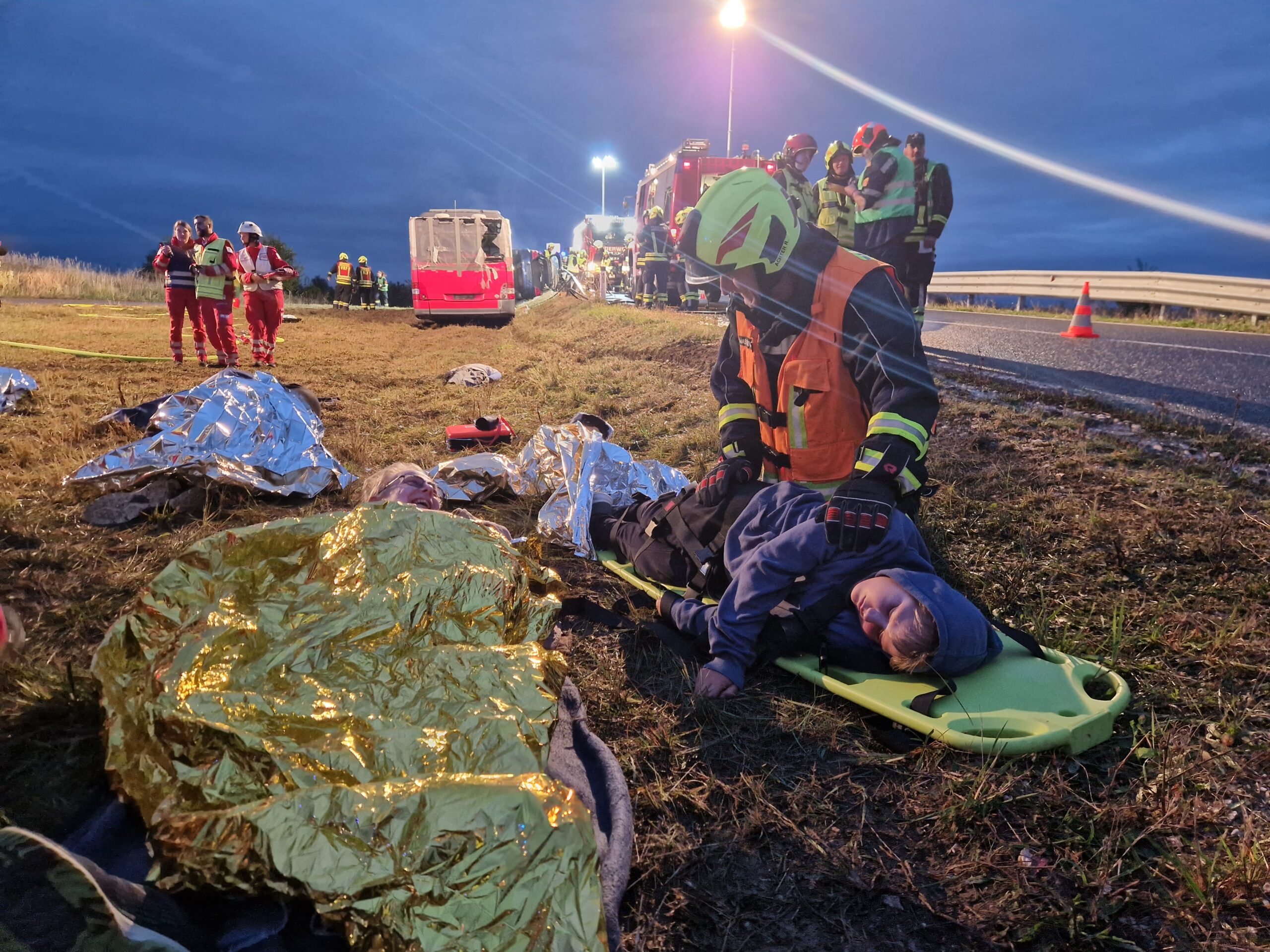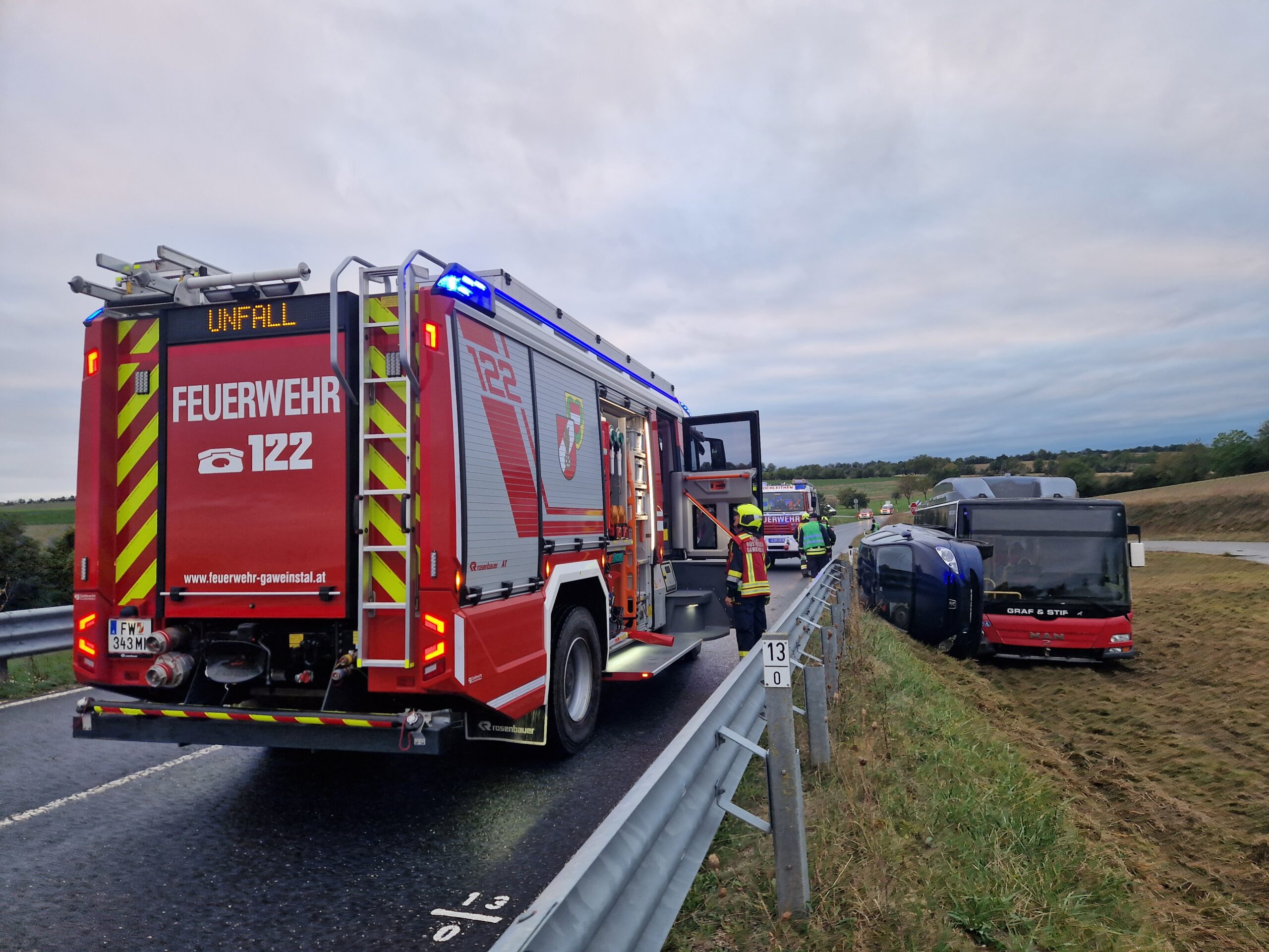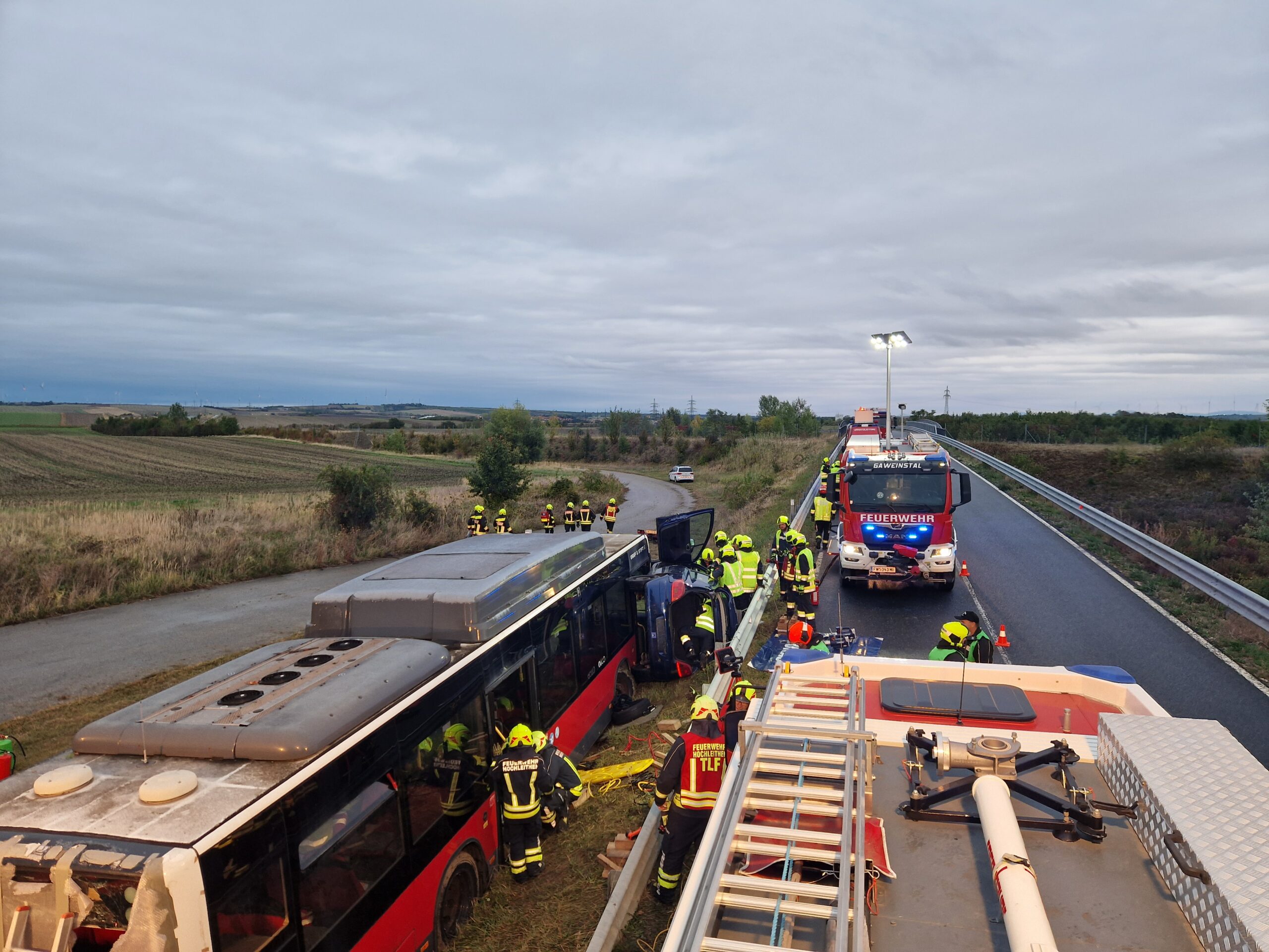 Am Freitagabend fand gemeinsam mit den Freiwilligen Feuerwehren Gaweinstal, Streifing und dem Roten Kreuz eine Gesamtübung zum Thema „Verkehrsunfall mit mehreren verletzten und eingeklemmten Personen“, statt. Ein PKW wollte einen Radfahrer auf der Landstraße zwischen Bogenneusiedl und Gaweinstal überholen und kollidierte daraufhin mit einem Linienbus. Der Fokus der Übung lag somit auf der fachgerechten Rettung der eingeklemmten und verletzten Personen aus dem Linienbus und einem PKW, wobei die Feuerwehren stets mit den anwesenden Kräften des Rettungsdienstes zusammenarbeiteten. Um eine reibungslose und realitätsgetreue Einsatzübung darzustellen, nahmen an diesem Großeinsatz 64 Feuerwehrleute und rund 20 Rettungskräfte teil.