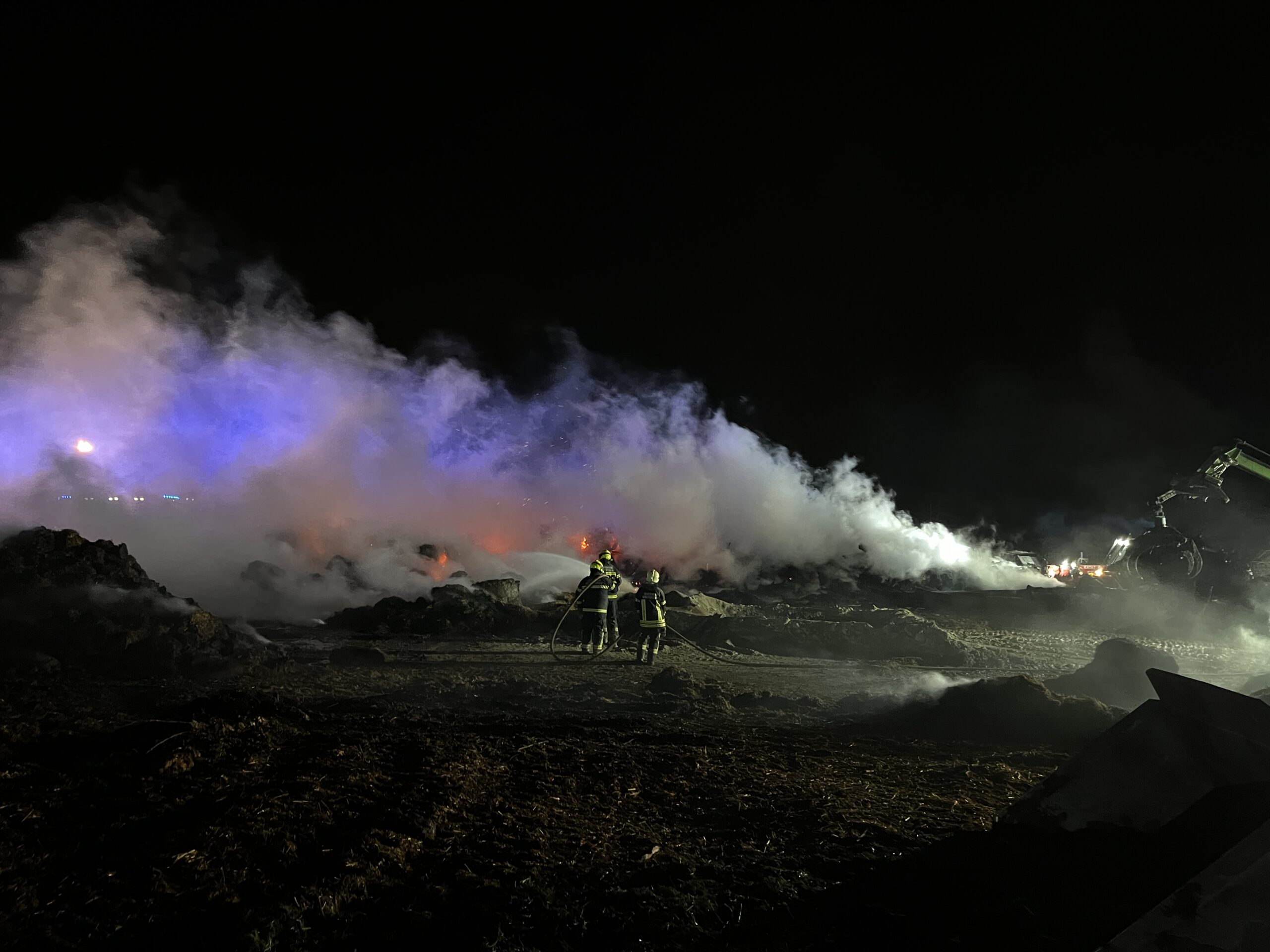 Gestern Abend kam es auf einem Holzlagerplatz neben der A5 nahe Wolkersdorf zu einem Großbrand. Obwohl aufgrund der Freifläche vor Ort keine Gefahr für angrenzende Gebäude bestand, musste durch die erschwerten Bedingungen der Löschwasserversorgung ein Pendelverkehr am Einsatzort mit mehreren Tanklöschfahrzeugen eingerichtet werden, zu dem auch wir mit unserem TLF zur Unterstützung angefordert wurden. Nach einigen Stunden konnte die Mannschaft unseres eingesetzten Fahrzeuges schließlich wieder in unser Feuerwehrhaus einrücken.