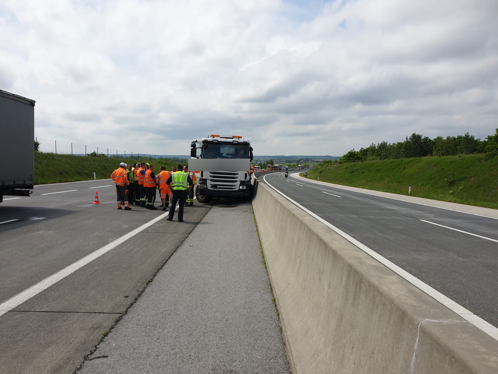 Die ersten Kameraden brachen aufgrund der Alarmierung mit dem Rüstlöschfahrzeug unverzüglich in Richtung Einsatzstelle auf. Am Einsatzort angekommen sicherte die Mannschaft als erstes die Unfallstelle ab. Aufgrund der schweren Beschädigungen an dem Fahrzeug wurde, nach Absprache mit der ebenfalls alarmierten Feuerwehr Wolkersdorf und der Autobahnpolizei, ein privates Abschleppunternehmen verständigt. Inzwischen entfernten wir Betonteile von der Fahrbahn und konnten nach insgesamt rund zwei Stunden wieder in das Feuerwehrhaus einrücken.