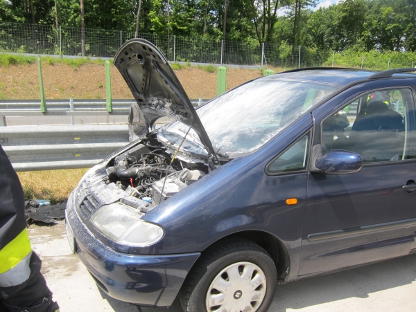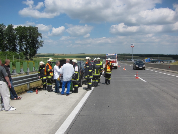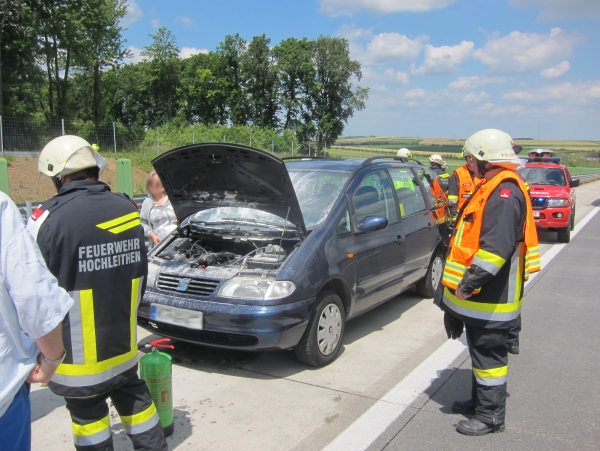 Am Einsatzort angekommen befand sich ein bereits vom Fahrer gelöschtes Auto am Straßenrand. Die Feuerwehr Hochleithen übernahm die Nachlöscharbeiten und die Erstabsicherung des Einsatzortes. Nach Anweisung der Polizei wurde das Fahrzeug von der Autobahn entfernt.