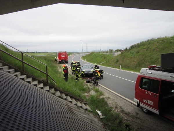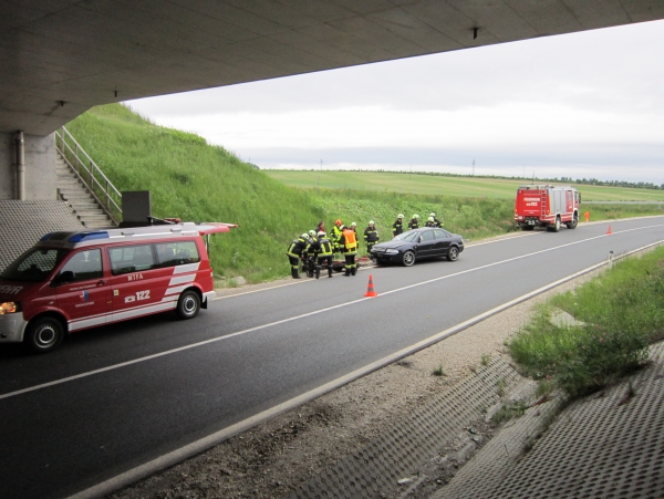 Der PKW Lenker kam unter der Autobahnbrücke ins Schleudern und nach einem Überschlag auf dem Dach zum Stillstand. Während der kurzen Sperre wurde der PKW aufgestellt und die Fahrbahn wieder freigemacht.