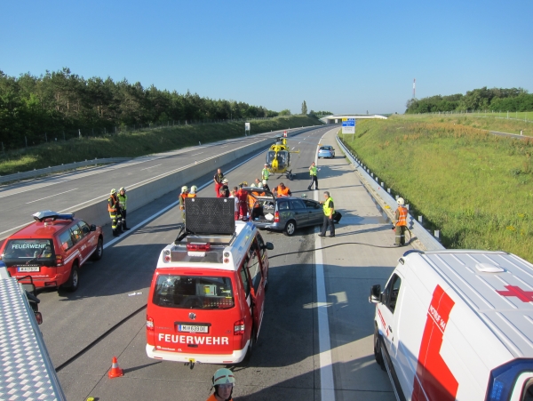 Die Lenkerin eines Opel Astras kam nach einem Überschlag auf der Autobahn zum Stehen. Sie wurde schwer verletzt mit dem Notarzthubschrauber ins Landesklinikum Mistelbach geflogen. Nach kurzer Sperre konnte die Fahrbahn wieder freigegeben werden.