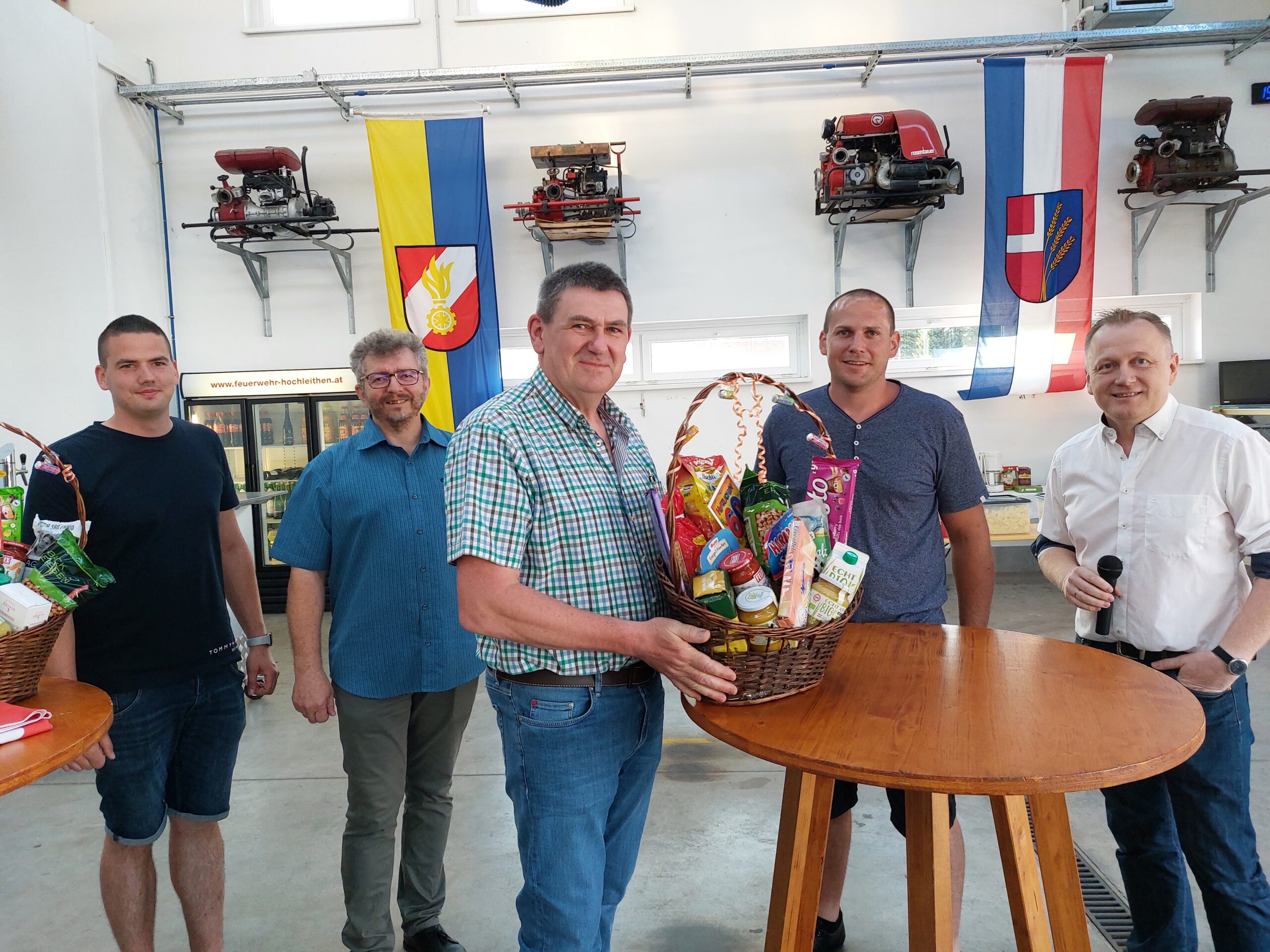 Mit einer kurzen Rede eröffnete HBI Johannes Koller die Feier und bei dieser Gelegenheit wurde FM Christian Randus, als Dank für die ständige Versorgung unserer Kantine mit Süßigkeiten und Knabbereien, ein Dankeschön übergeben. Des Weiteren überreichten wir HFM Wolfgang Antl und seiner Barbara eine Feuerwehr-Babydecke zur Gratulation der Geburt ihres Sohnes Leopold.