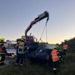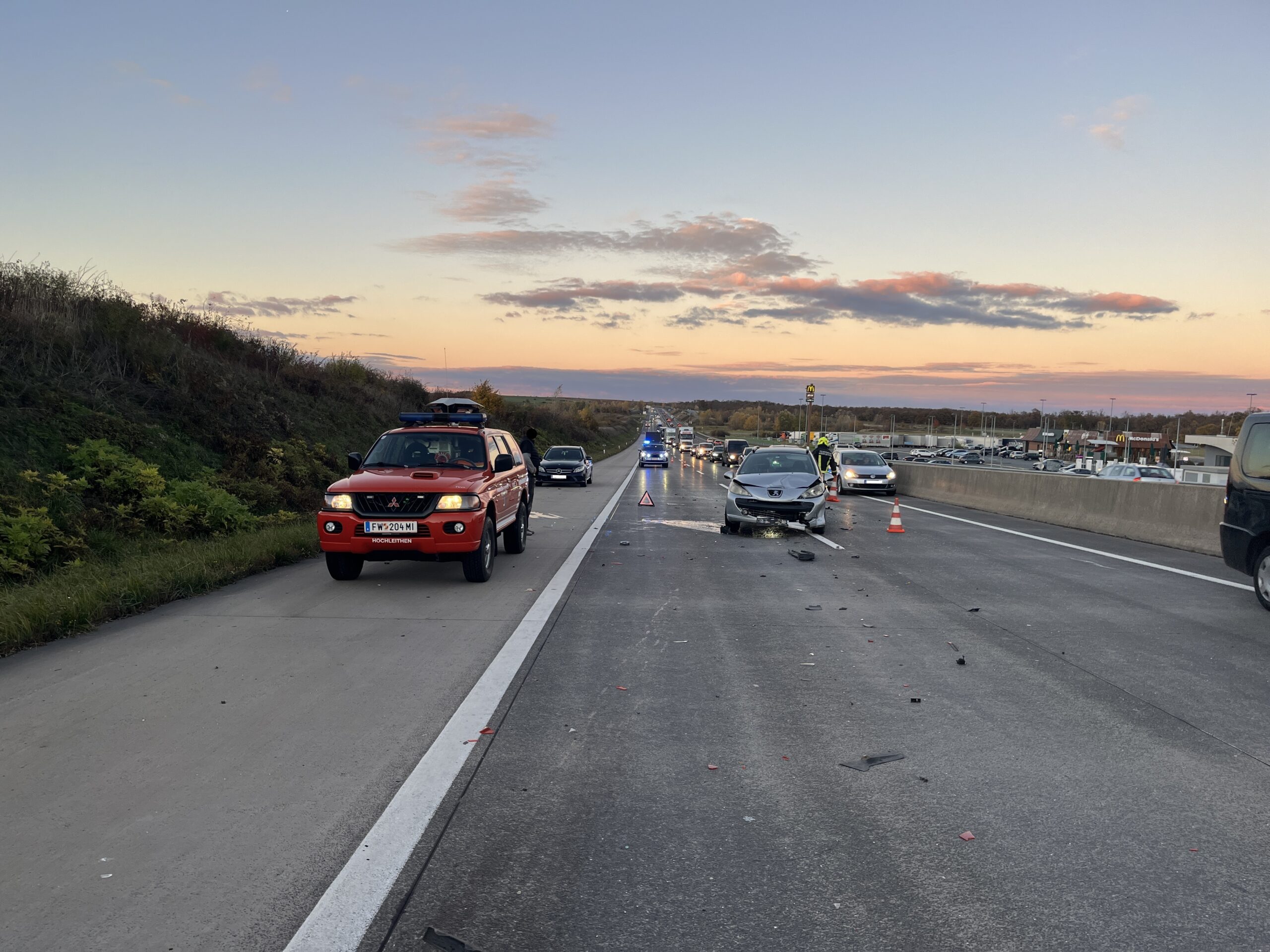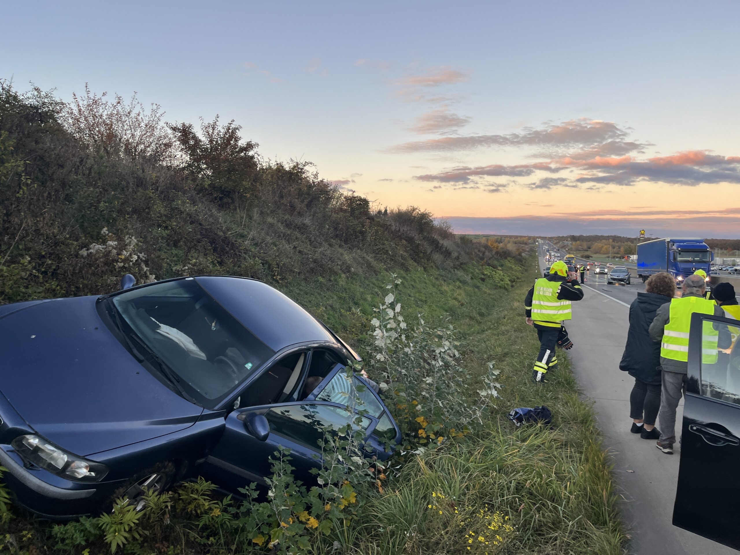 Am späten Nachmittag wurden wir zum zweiten Einsatz des Tages – einem weiteren Verkehrsunfall – auf die A5, in Fahrtrichtung Wien, alarmiert. Beim Eintreffen an der Einsatzstelle zeigte sich, dass zwei Fahrzeuge in den Unfall verwickelt waren. Ein PKW war von der Fahrbahn abgekommen und befand sich im Straßengraben.