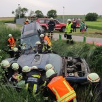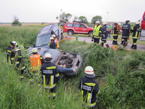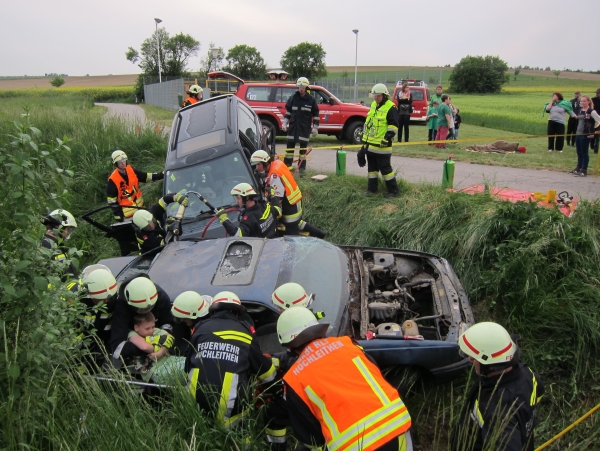 Übungsannahme war ein Verkehrsunfall mit zwei beteiligten PKWs mit mehreren eingeklemmten Personen.