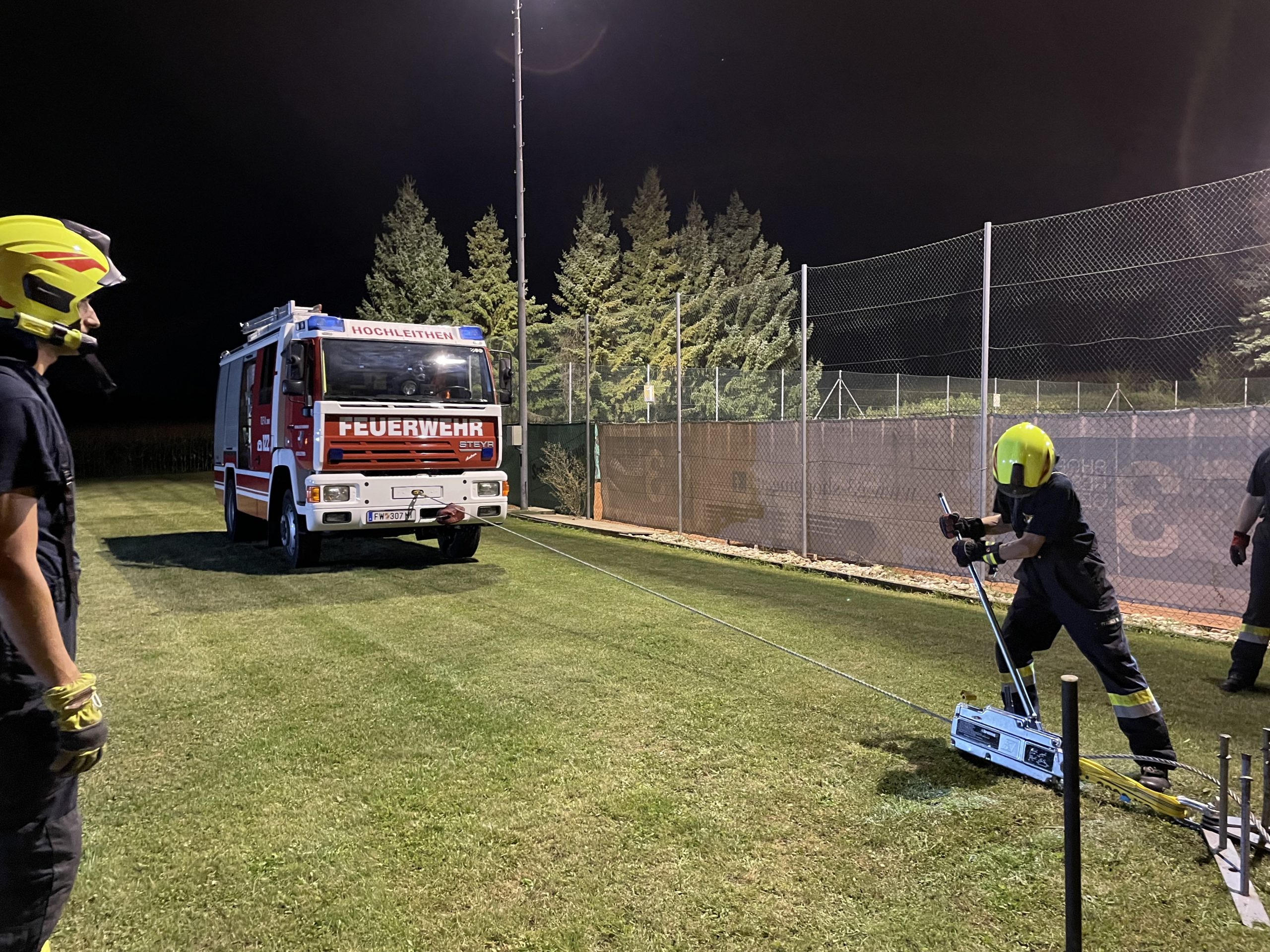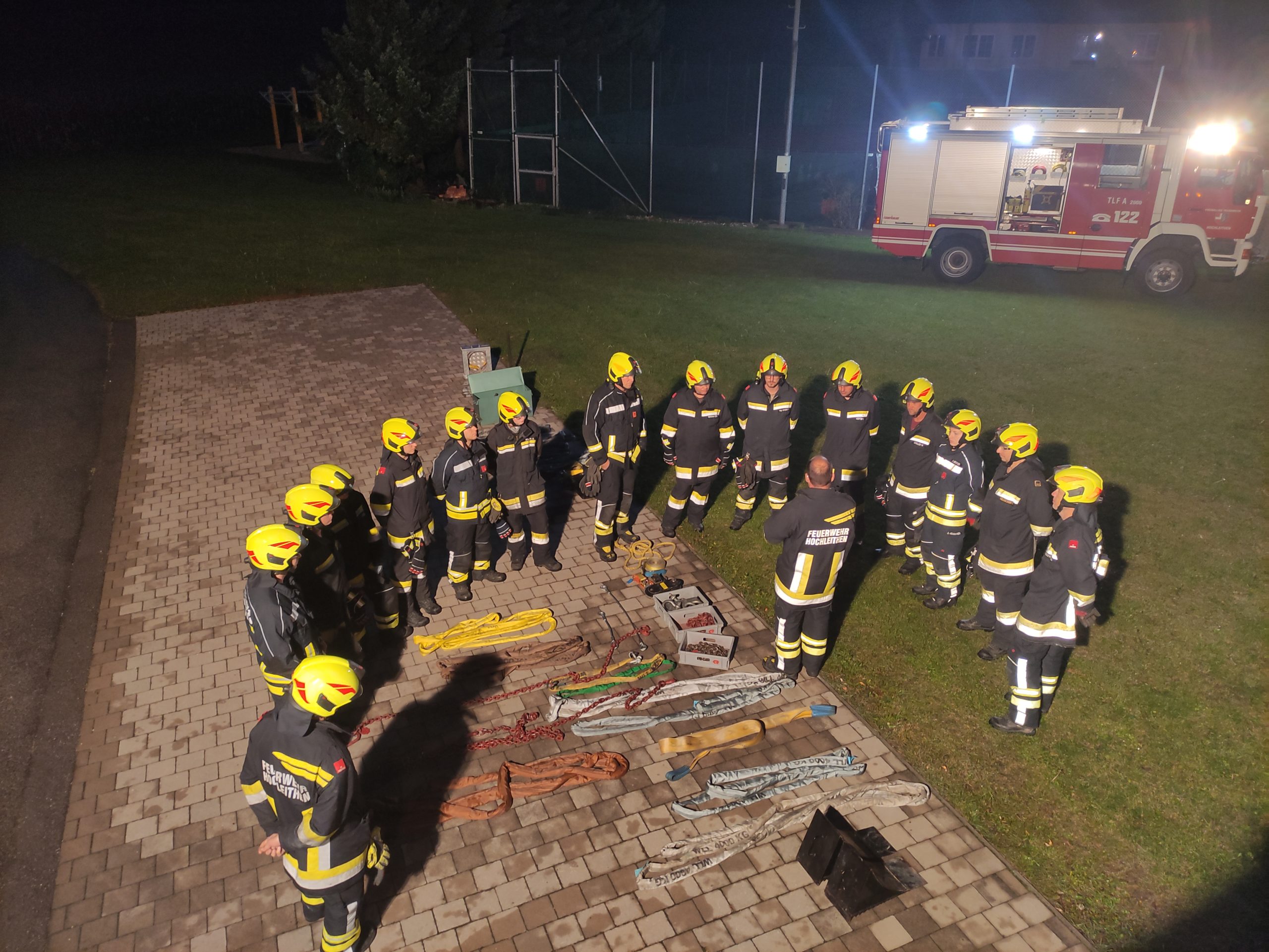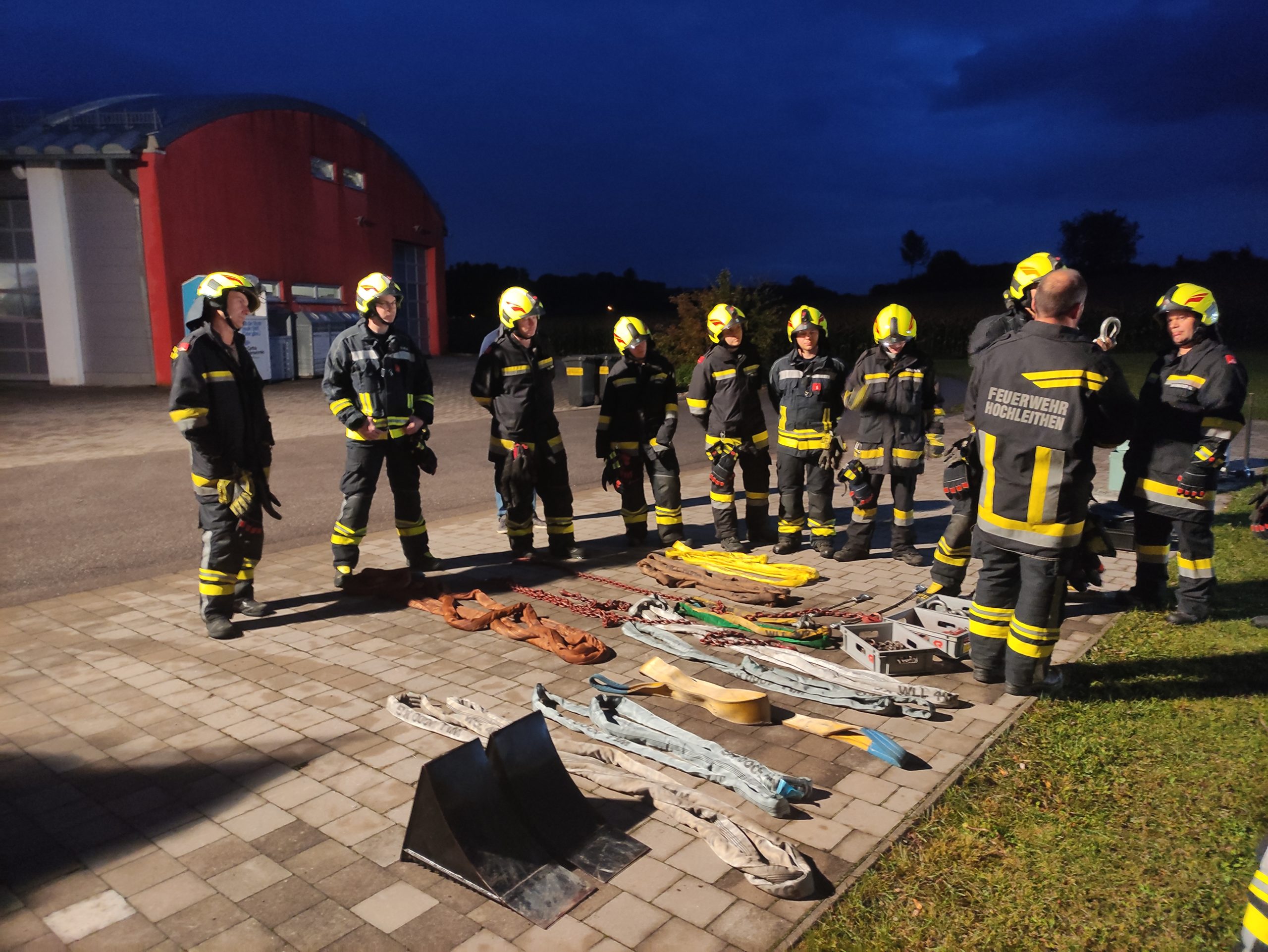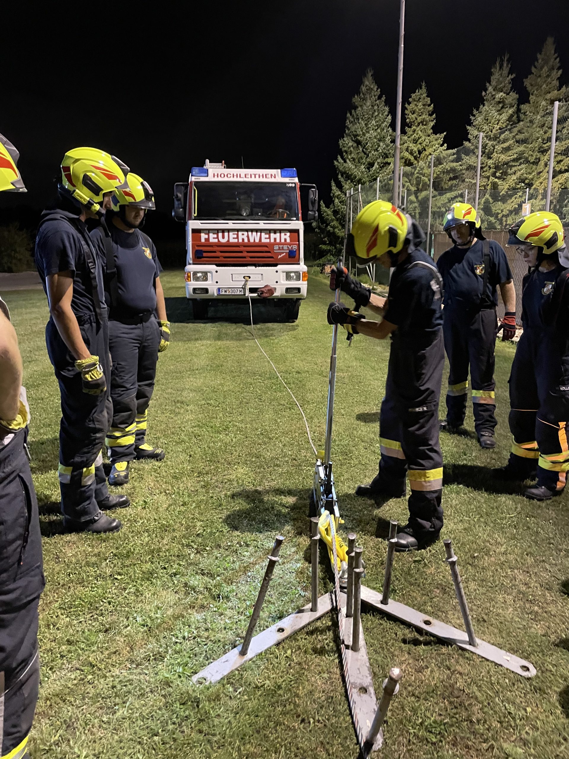 Der erste Übungsdurchgang nach der Sommerpause wurde als technische Schulungsübung, aufgeteilt auf vier Gruppen, abgehalten. Zentrale Themen waren verschiedenste Anschlagmittel und –punkte, die richtige Handhabung des Greifzugs und der Seilwinde.