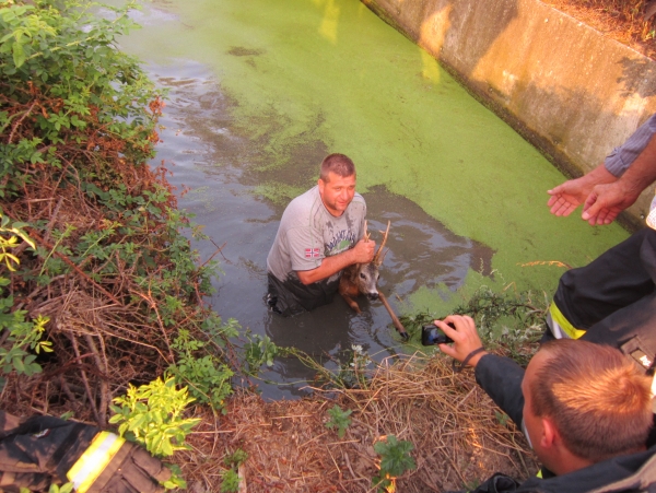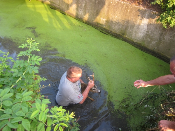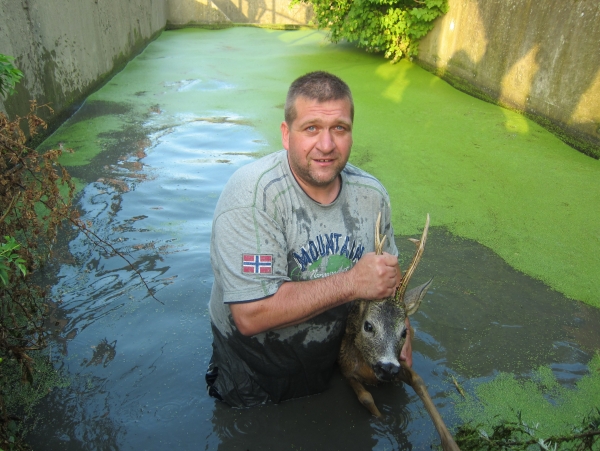 Aufmerksame Passatnen entdeckten einen 5-jährigen „guten“ Rehbock im Auffangbecken beim Lagerhaus. Unser Kommandantstellvertreter OBI Christian Achter (Hobbyjäger) reagierte ohne zu zögern und sprang ins Becken um den übermüdeten Rehbock zu retten.