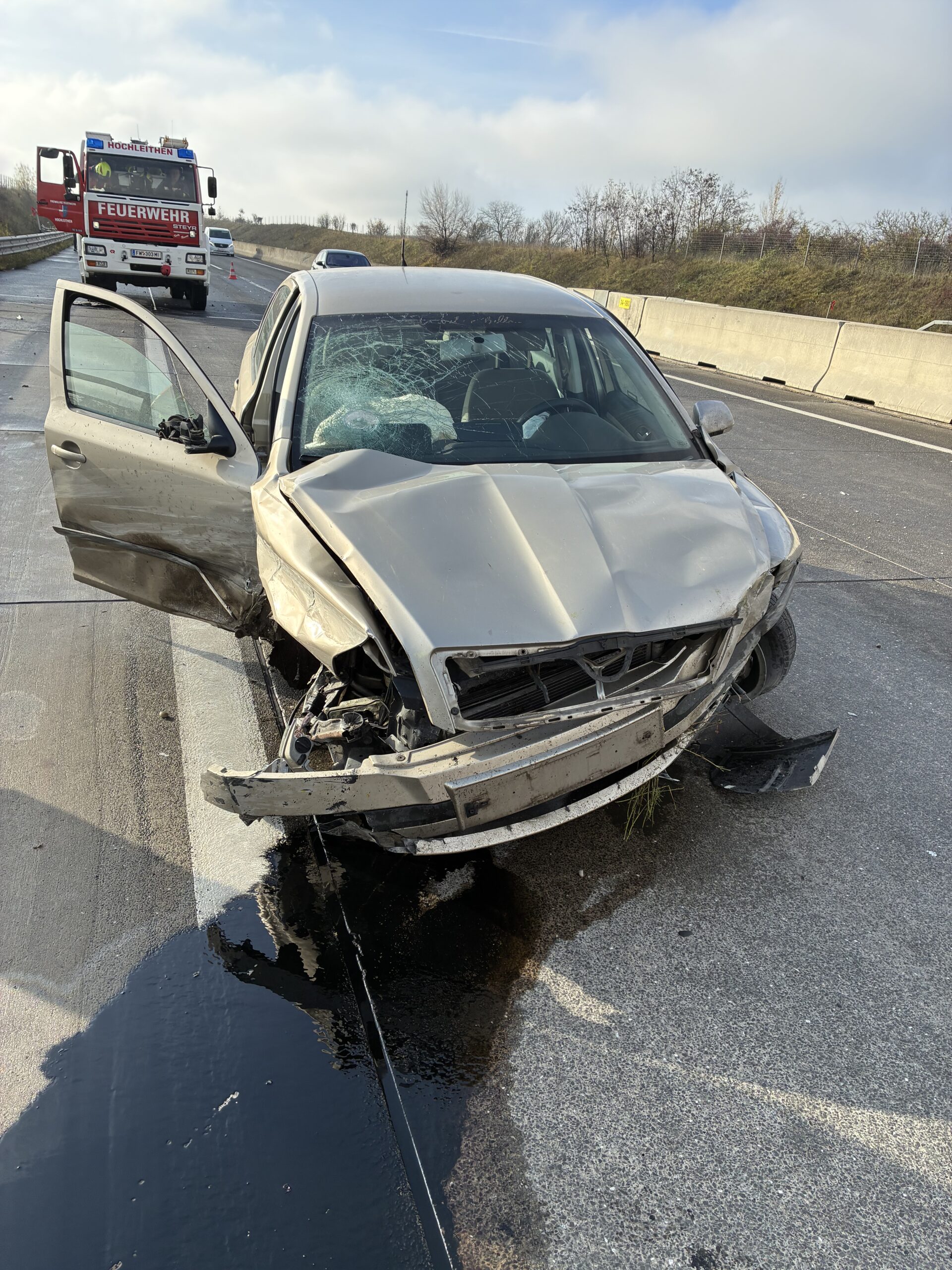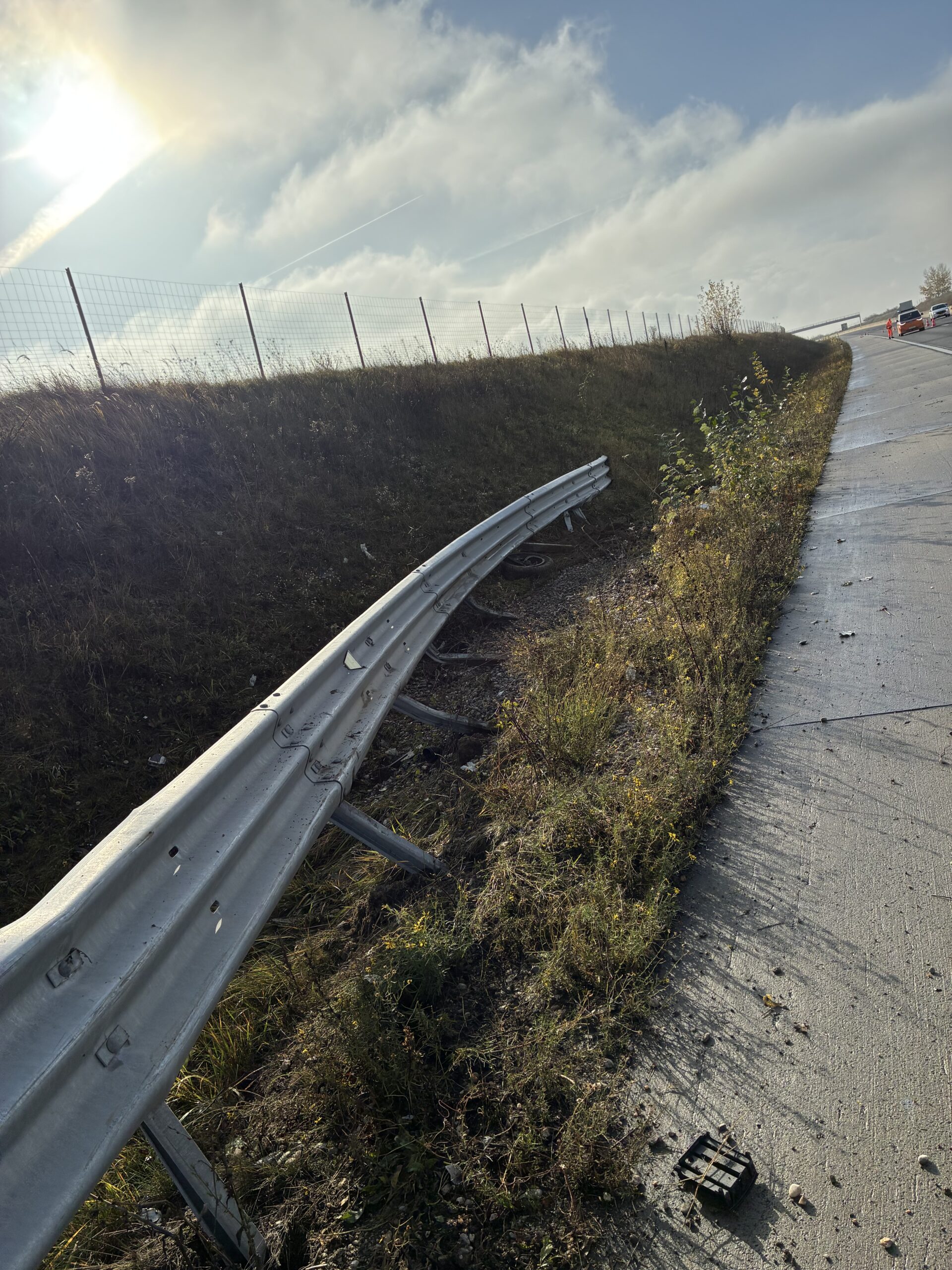 Die Straße war jedoch aufgrund auslaufender Betriebsmittel und Fahrzeugteilen stark verschmutzt. Wir führten umfassende Aufräumarbeiten durch, brachten Ölbindemittel auf und reinigten anschließend die betroffene Fläche.